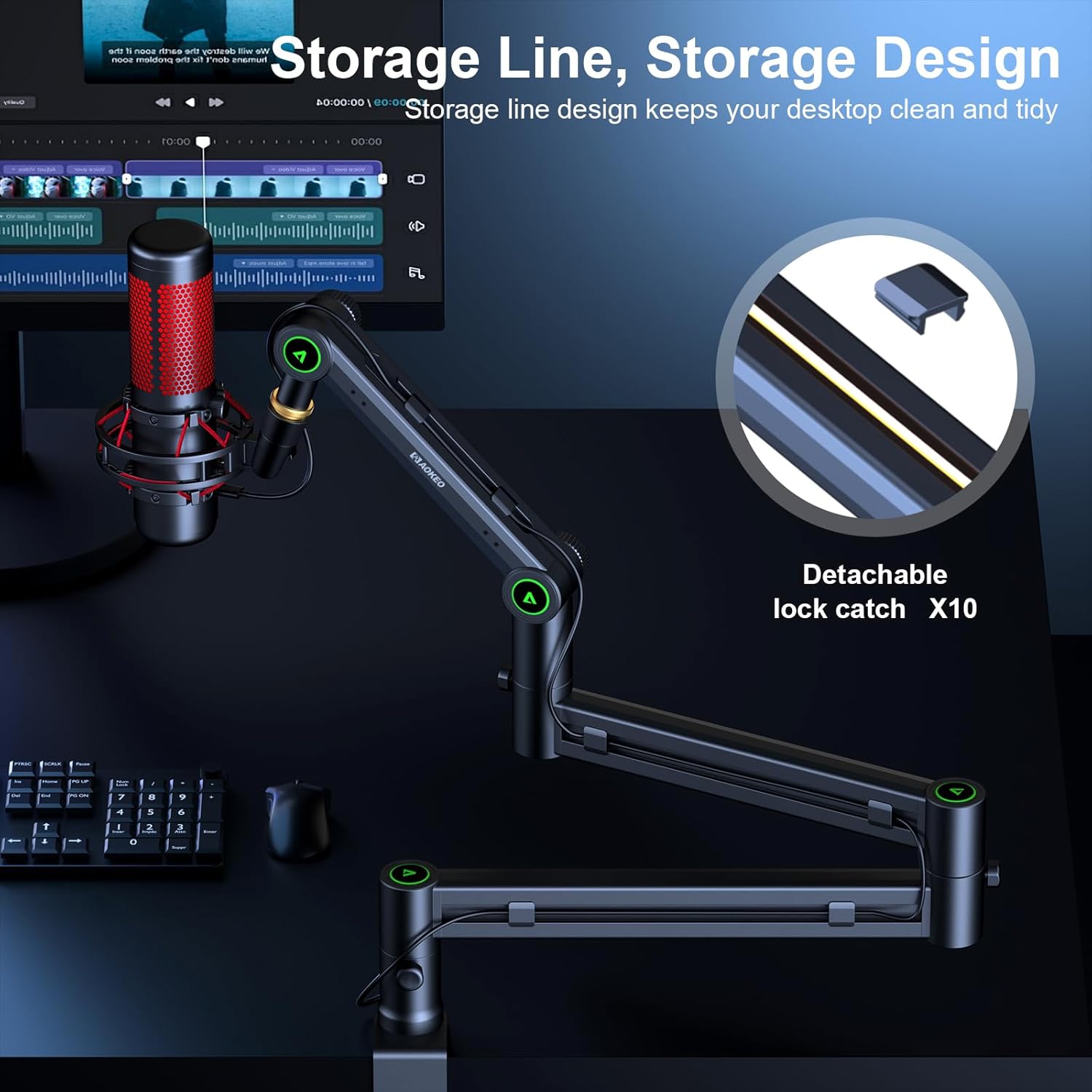 - EXTREME STABILITY:The low profile design of this microphone arm allows for a lower centre of gravity of the mic arm, which dramatically improves stability. It ensures that the microphone position is fixed and unchanged, without shaking or shifting, even during intense handling, providing you with clear, noise-free recordings. Perfect for gaming, podcasting, recording and streaming.