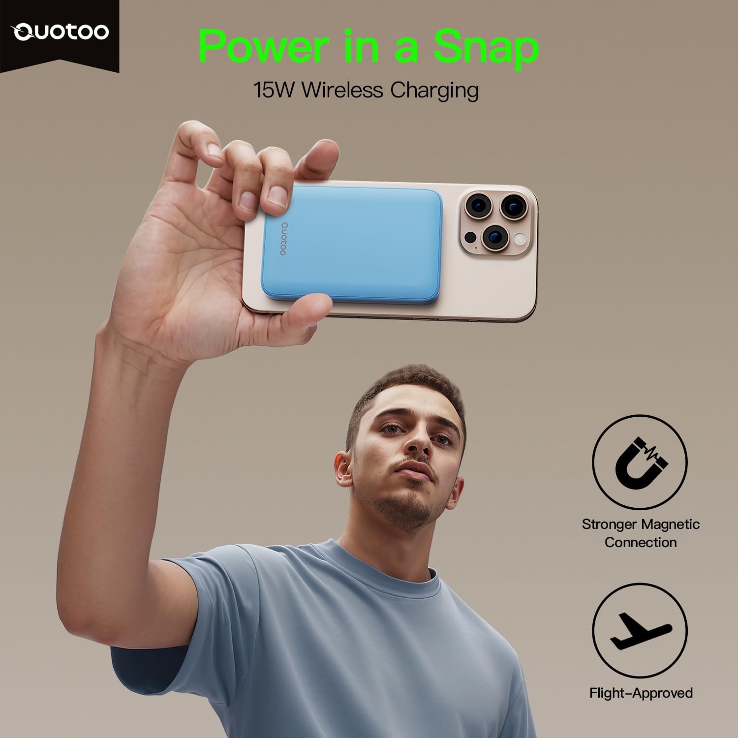 - 【What You Ge】5000mAh magnetic power bank for iPhone (2025 version) x 1, C-C cable x 1, user manual x 1.Ouotoo's professional technical support and team service,OUOTOO pays attention to quality issues and ensures that the magnetic suction wireless charger you receive has undergone a series of quality testing processes, Enjoy peace of mind with our 733-day limited warranty, ensuring you won't worry about returns. If needed, we will provide solutions