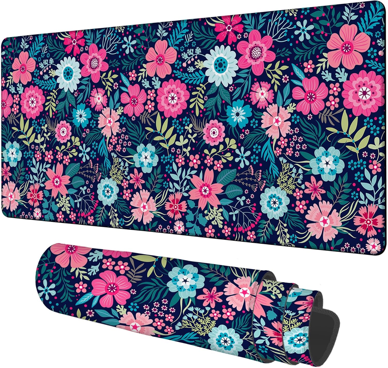 Colorful Flowers Gaming Mouse Pad 3mm Thick Stitched Edge Waterproof Non-Slip Large Computer Keyboard Mouse Mat,Suitable for Office Entertainment Decorative Desk Pad 35.4 x 15.7 Inches