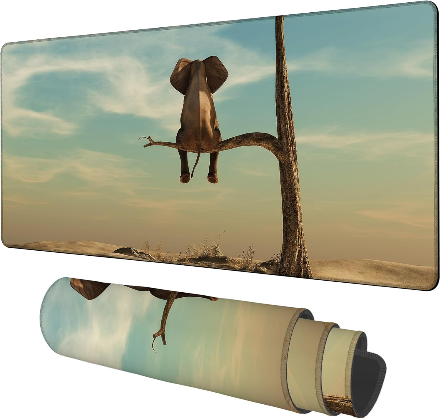 A Elephant Gaming Mouse Pad 3mm Thick Stitched Edge Waterproof Non-Slip Large Computer Keyboard Mouse Mat,Suitable for Office Entertainment Decorative Desk Pad 35.4 x 15.7 Inches