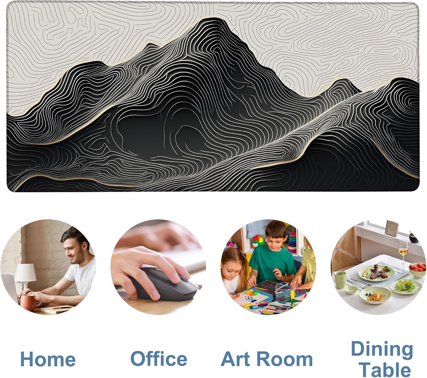 - Extra Large Size:The keyboard mouse mat measures 35.4 x 15.7 inches,with a large size design.The desk mat can cover most of the desktop area,enough to accommodate a computer,keyboard and other desktop items.The large size desk pad can better protect the desktop.Suitable for daily use,work and games