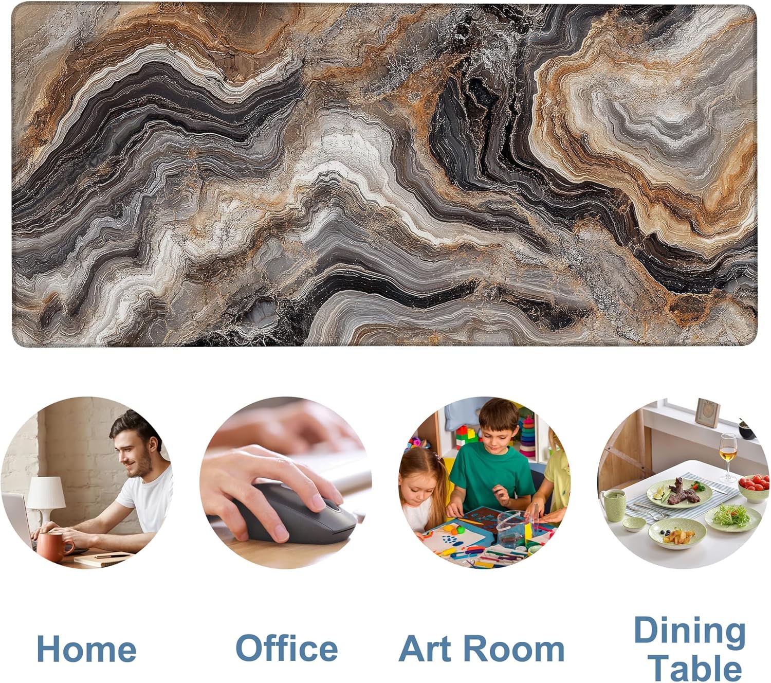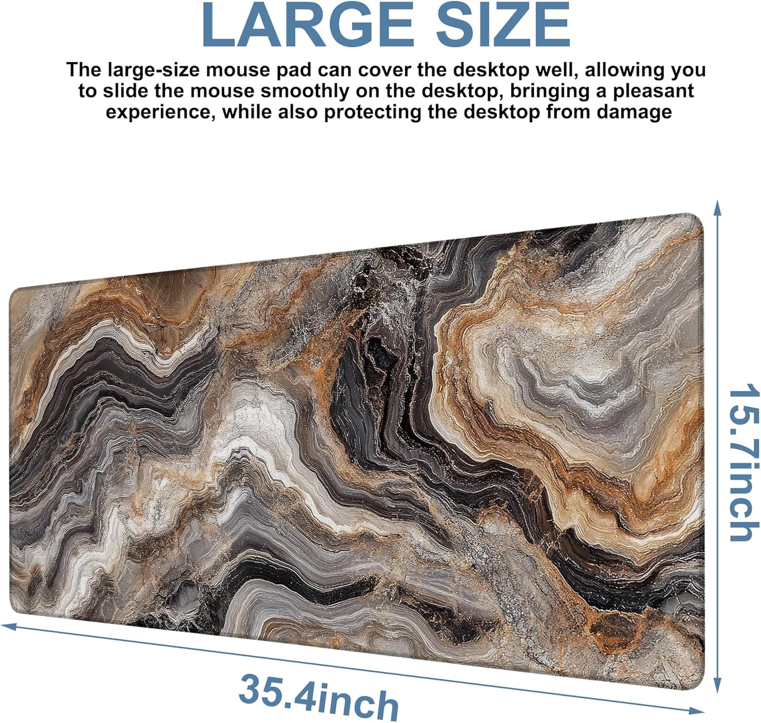 Large Mouse Pad Abstract Marble Gaming Desk Pad Computer Keyboard Non-Slip Waterproof Mouse Mat with Rubber Base and Stitched Edges Entertainment Office Writing Desk Mat 35.4 x 15.7 Inches