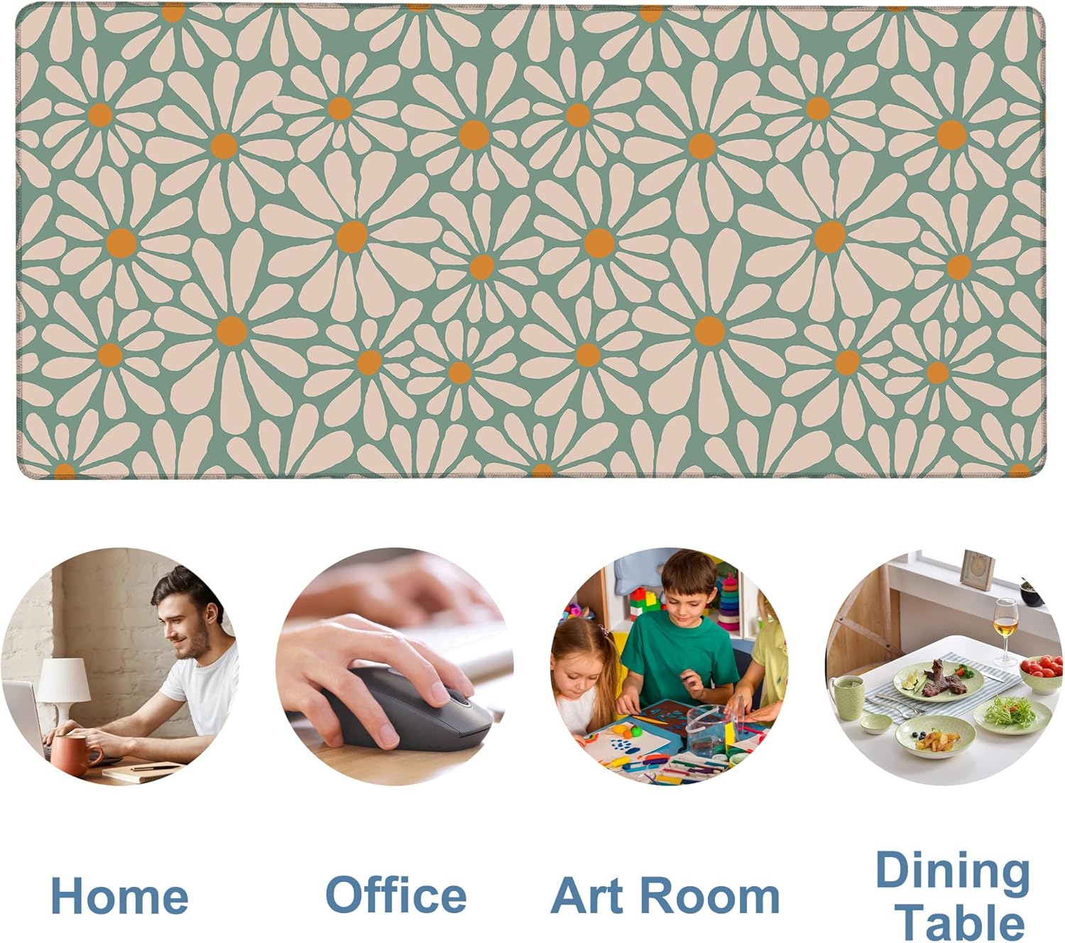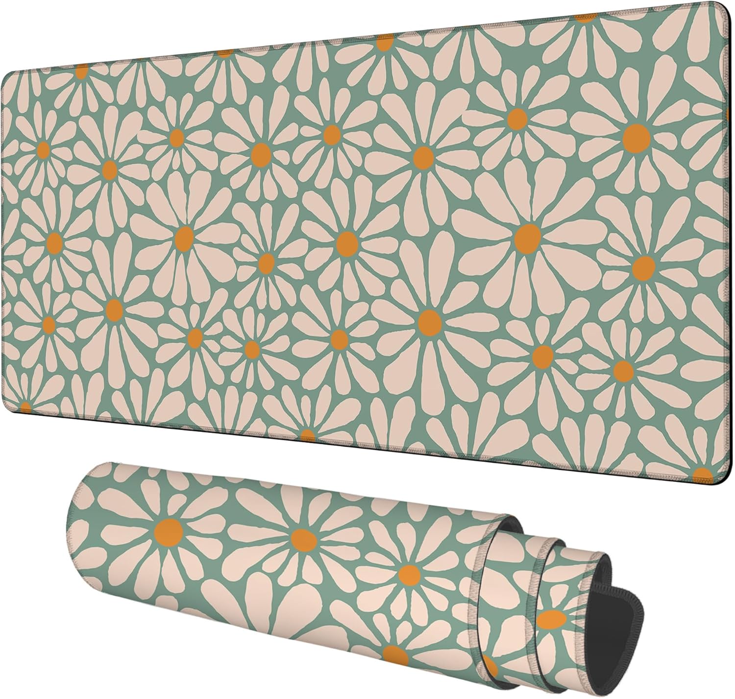 Retro Daisy Flowers Gaming Mouse Pad 3mm Thick Stitched Edge Waterproof Non-Slip Large Computer Keyboard Mouse Mat,Suitable for Office Entertainment Decorative Desk Pad 35.4 x 15.7 Inches