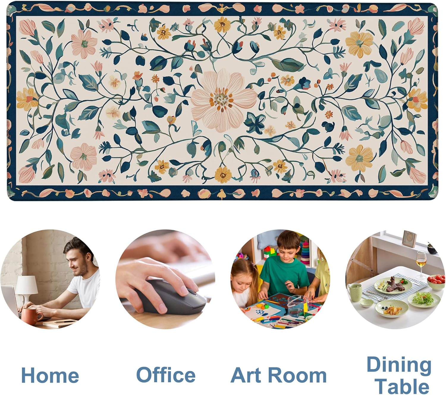 - Extra Large Size:The keyboard mouse mat measures 35.4 x 15.7 inches,with a large size design.The desk mat can cover most of the desktop area,enough to accommodate a computer,keyboard and other desktop items.The large size desk pad can better protect the desktop.Suitable for daily use,work and games