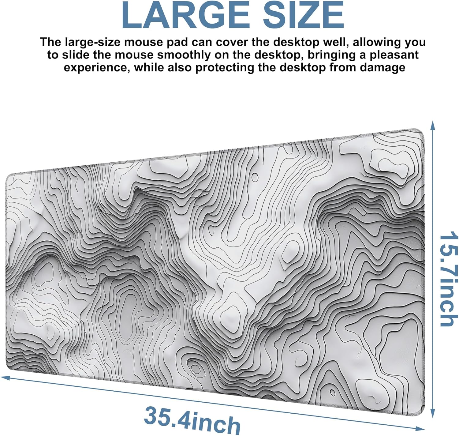 - Extra Large Size:The keyboard mouse mat measures 35.4 x 15.7 inches,with a large size design.The desk mat can cover most of the desktop area,enough to accommodate a computer,keyboard and other desktop items.The large size desk pad can better protect the desktop.Suitable for daily use,work and games