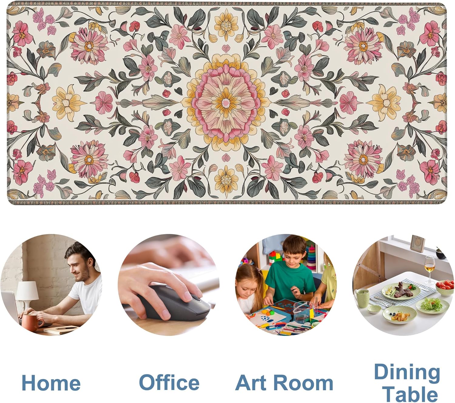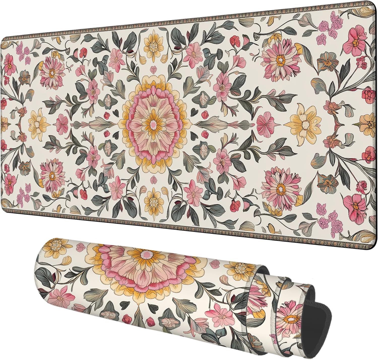Elegant Carpet Gaming Mouse Pad 3mm Thick Stitched Edge Waterproof Non-Slip Large Computer Keyboard Mouse Mat,Suitable for Office Entertainment Decorative Desk Pad 35.4 x 15.7 Inches