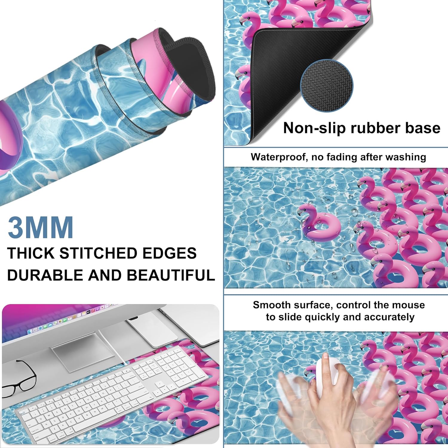 Gaming Desk Pad Large Extra Length Pink Flamingos Mouse Pad Keyboard Laptop Non-Slip Waterproof with Rubber Base Thick Stitched Edge Mouse Mat for Office Home 35.4 x 15.7 Inches