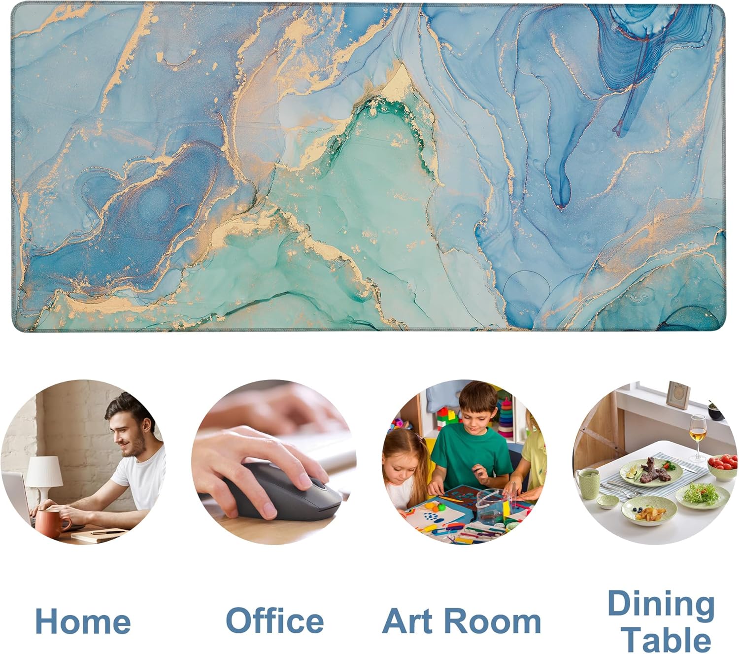 Gaming Desk Pad Large Extra Length Fluid Art Marble Mouse Pad Keyboard Laptop Non-Slip Waterproof with Rubber Base Thick Stitched Edge Mouse Mat for Office Home 35.4 x 15.7 Inches