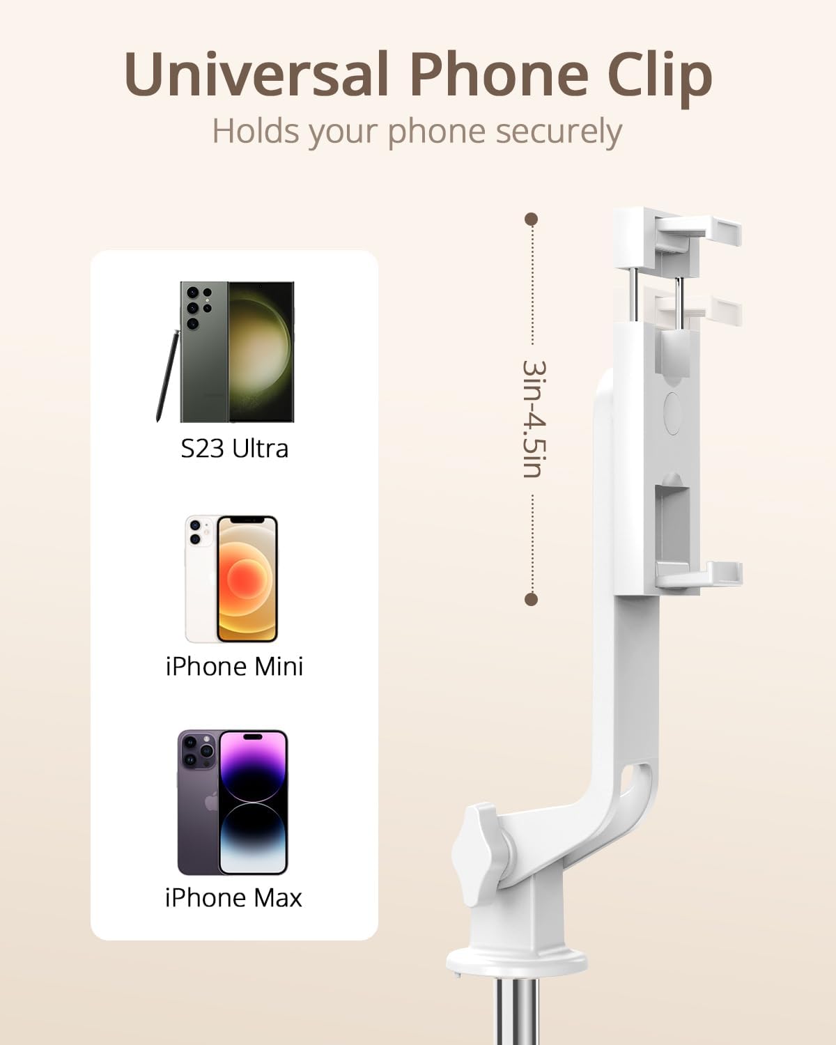 - ăUniversal Phone ClipăSecurely fits 3â4.5 inch wide phones, compatible with iPhone (Mini to Max), Samsung Galaxy, and most Android devices.