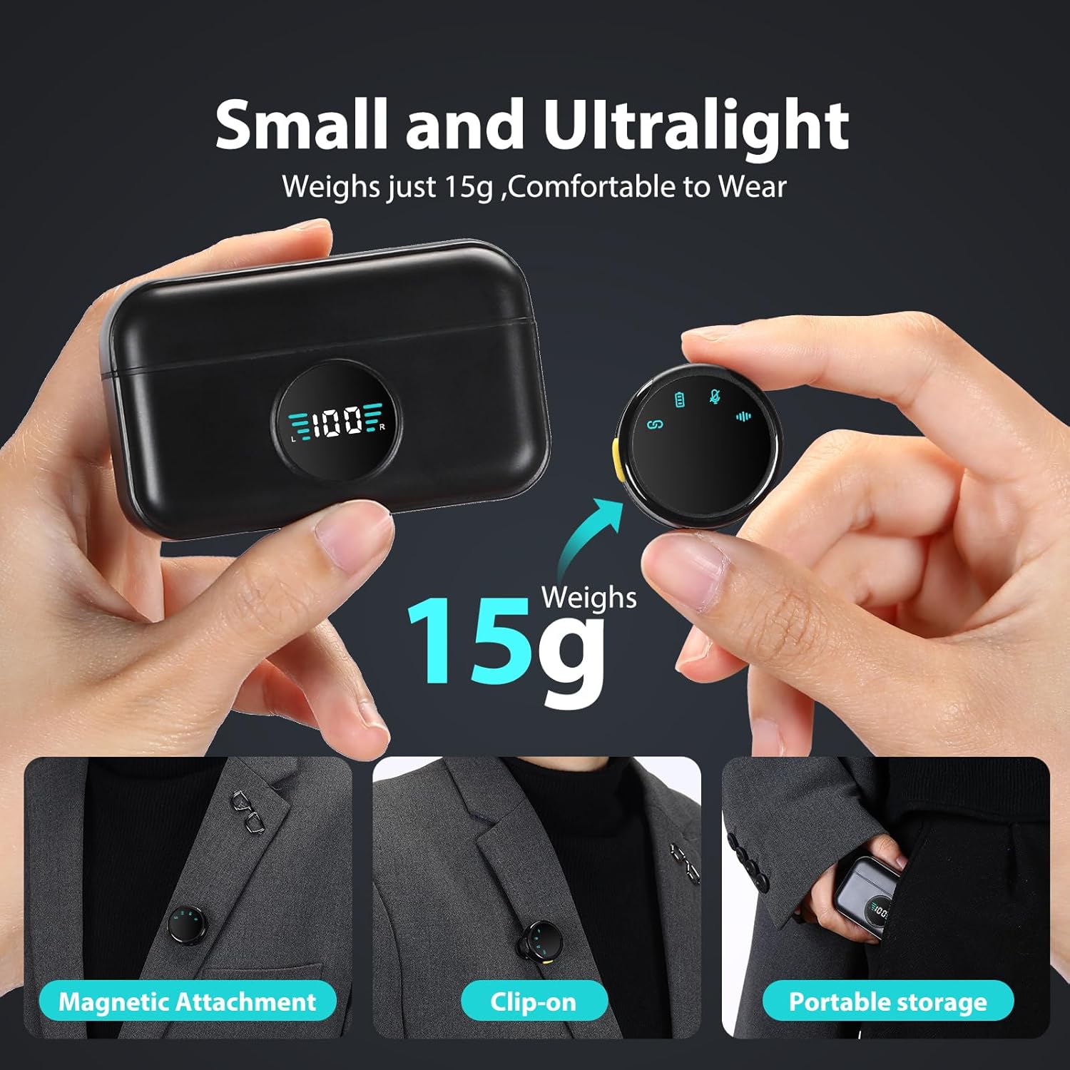 Wireless Lavalier Microphone with Charging Case,AI Noise Reduction,30H Endurance Time,Mini Wireless Microphone for iPhone 14/13/12/11/X with Lightning ,Mini Mic for Video Recording,YouTube,Vlogging