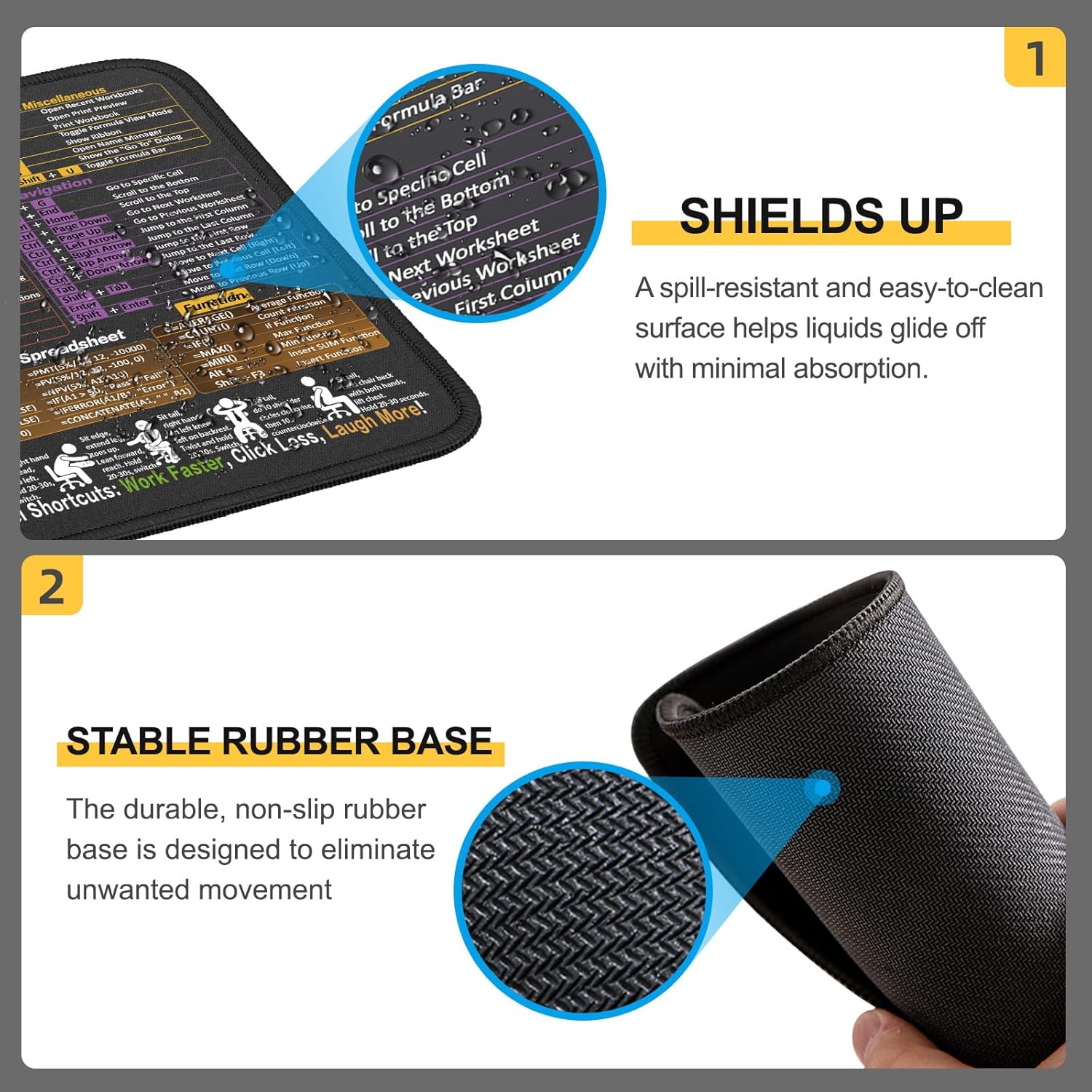 - Durable & Non-Slip Design: This Excel Shortcut Mouse Pad features stitched edges to reduce fraying. The non-slip rubber base helps keep it securely in place, and the water-resistant fabric allows for easier maintenance.