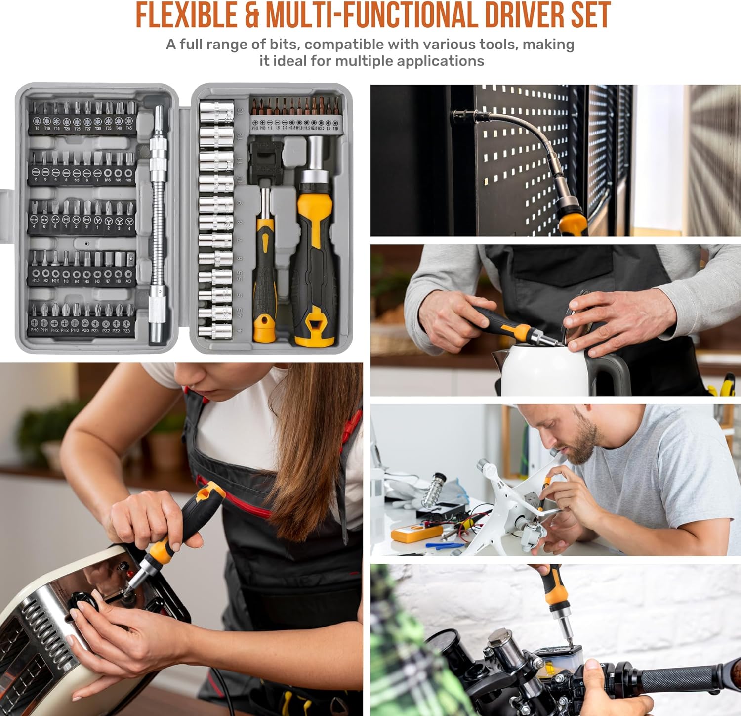 - Complete Multi Screwdriver Bit Set: Get precision, Torx, Hex, Pozidriv and Tamperproof Security types; covers a wide range of electronics, household and garage screwdriving repairs