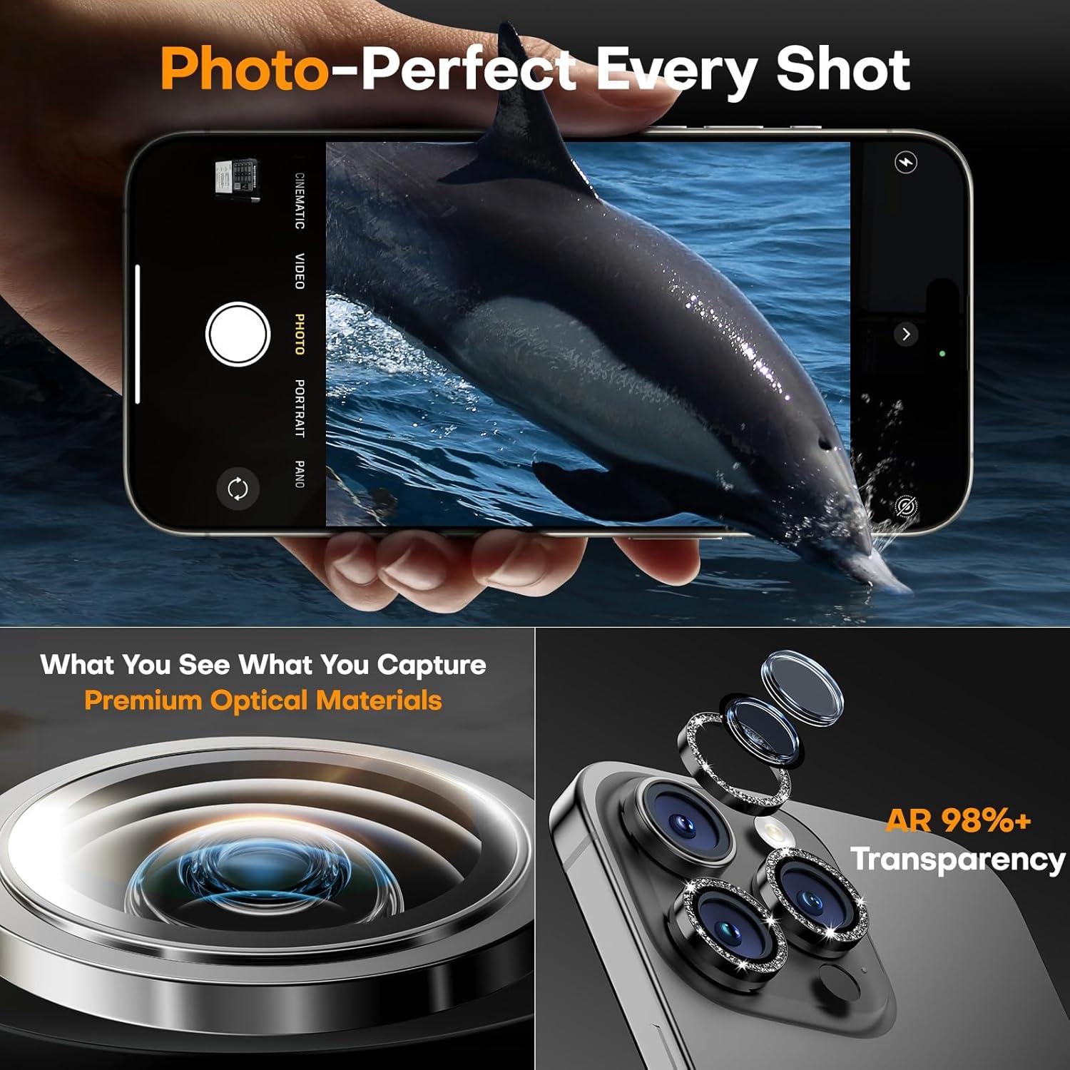 - [HD Metal Individual Lens Protectors] Compatible for iPhone 16 Pro Max/16 Pro/15 Pro Max/15 Pro/14 Pro Max/14 Pro. Enhanced protection and never falls off. Metal with 99% transmittance sapphire glass combination defends every impact angle and crack issue. Electroplating AF oiled technology shows telephoto and macro shots exhibit their original colors.