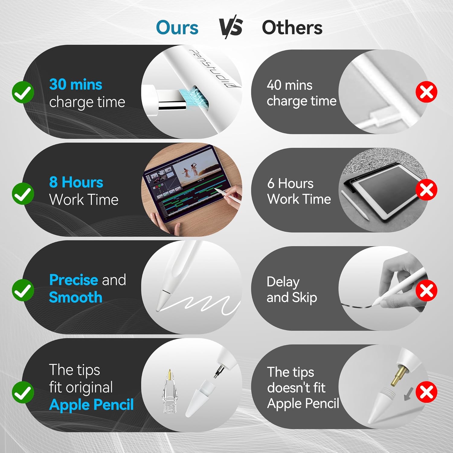 - 【Interchangeable Durable Tips】Includes premium metal tip and supports Apple Pencil tip replacements. Choose from soft, basic, or metal tips to match your writing or drawing style.
