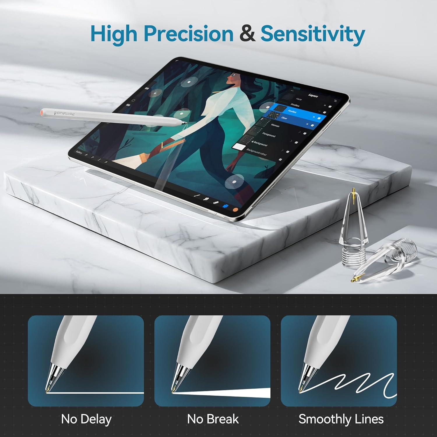- 【Screen Safe & Noise-Free Writing】The polished chrome tip is gentle on your iPad screen and ensures a silent, scratch-free writing experience. Ideal for quiet workspaces, libraries, and classrooms, it offers silent strokes without sacrificing sensitivity or control, protecting your device while enhancing productivity.