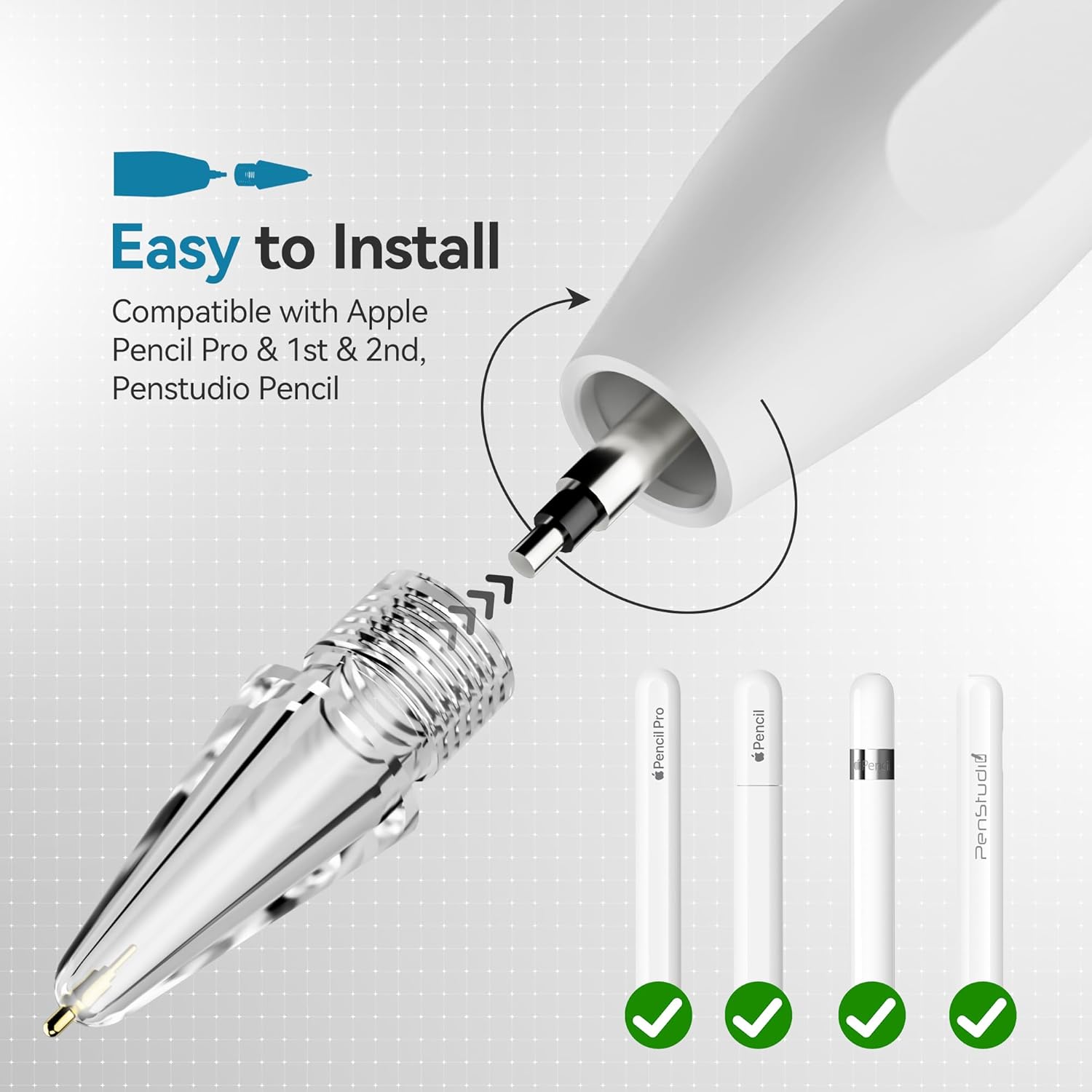 - 【Universal Fit & Easy Installation】Compatible with Apple Pencil Pro, 1st Gen, 2nd Gen, USB-C, and Penstudio Pencil, this tip is designed with 1:1 precision size matching the original. Installation takes seconds—twist on or off effortlessly. Stay ready with a 2-pack set built for artists, students, and professionals alike.