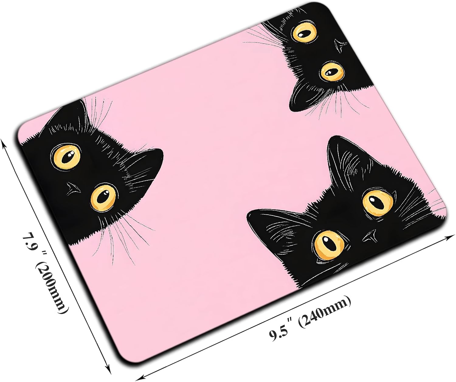 Mouse Pad, Cute Pink Black Cats Mouse Pads for Desk, 9.5" x 7.9" Non-Slip Rubber Base Computer Mousepad with Women, Portable Square Design for Wireless Mouse and Pad Laptop Office & Travel