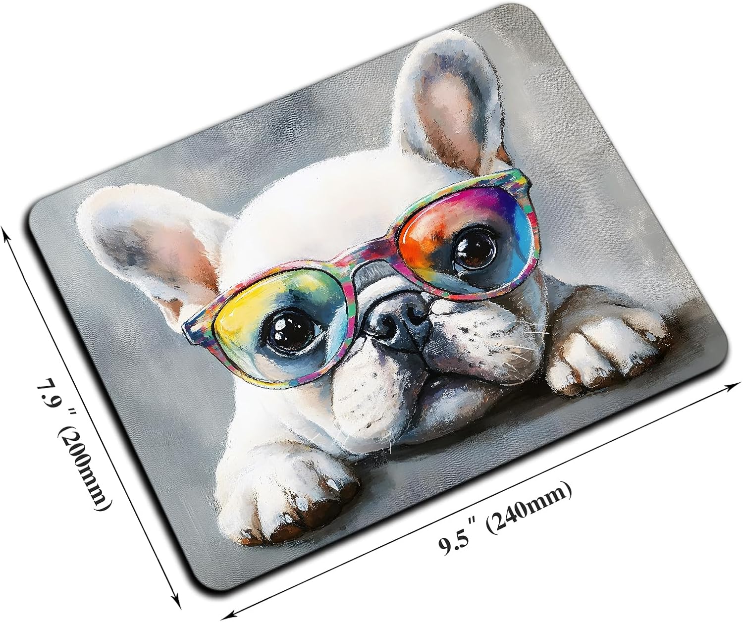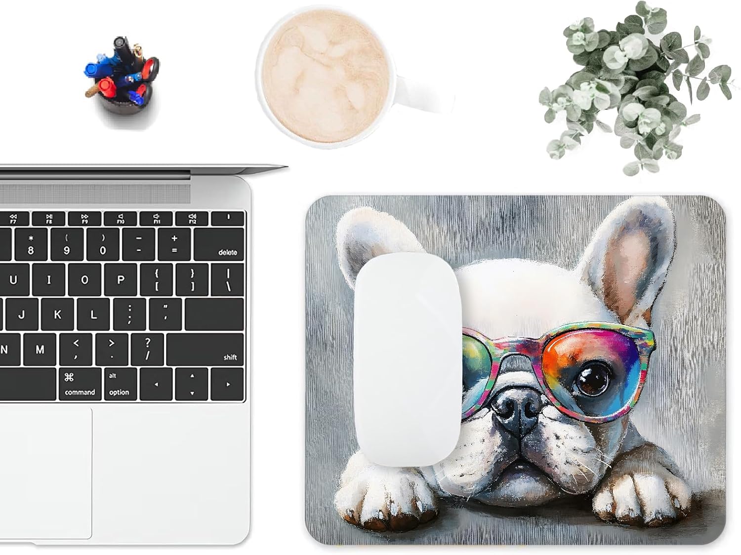 Mouse Pad, Cute Watercolor Bulldog Dog Mouse Pads for Desk, 9.5" x 7.9" Non-Slip Rubber Base Computer Mousepad with Women, Portable Square Design for Wireless Mouse and Pad Laptop Office & Travel