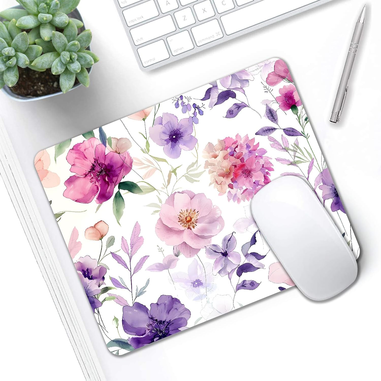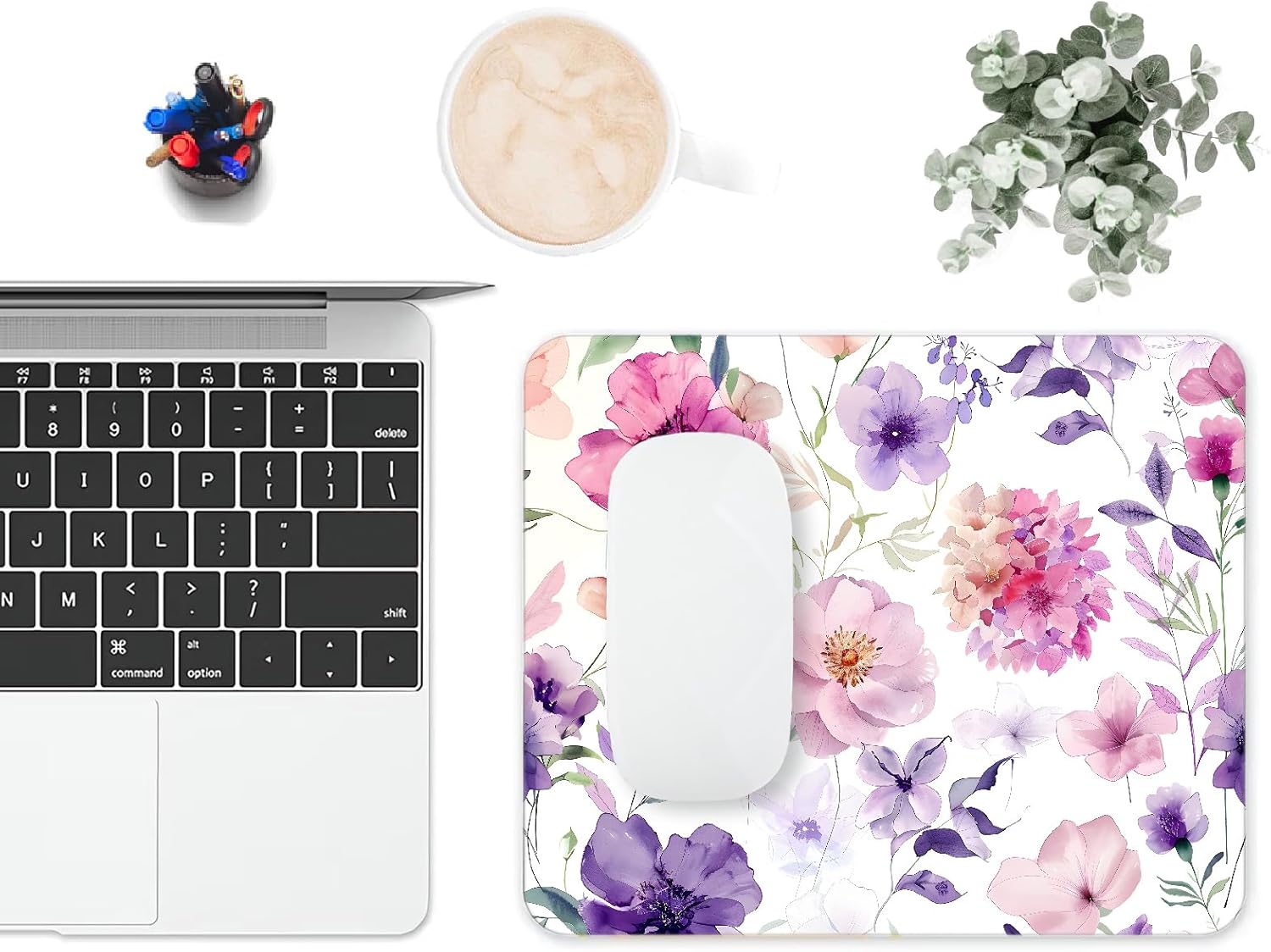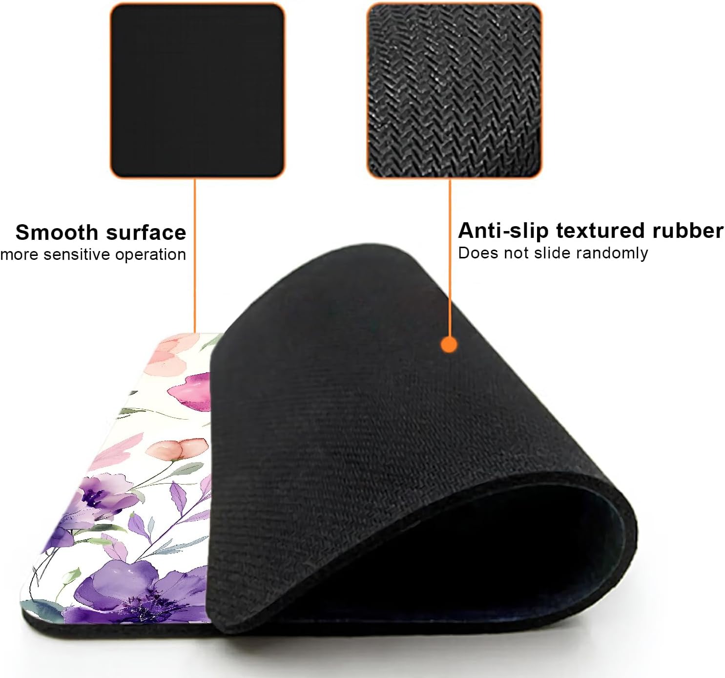 Mouse Pad, Cute Purple Watercolor Flowers Mouse Pads for Desk, 9.5" x 7.9" Non-Slip Rubber Base Computer Mousepad with Women, Portable Square Design for Wireless Mouse and Pad Laptop Office & Travel