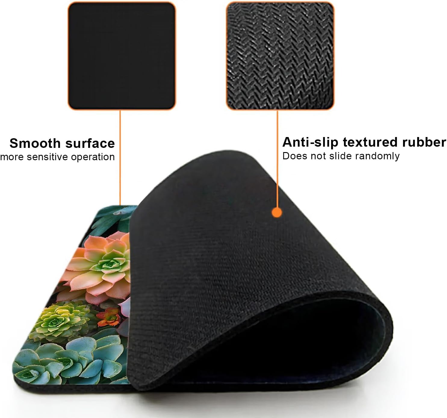 Mouse Pad, Cute Succulent Plants Mouse Pads for Desk, 9.5" x 7.9" Non-Slip Rubber Base Computer Mousepad with Women, Portable Square Design for Wireless Mouse and Pad Laptop Office & Travel