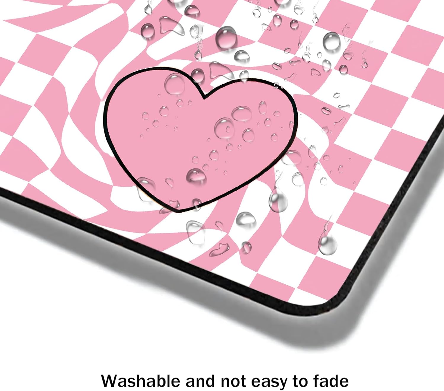 Mouse Pad, Cute Pink Checkered Heart Mouse Pads for Desk, 9.5" x 7.9" Non-Slip Rubber Base Computer Mousepad with Women, Portable Square Design for Wireless Mouse and Pad Laptop Office & Travel