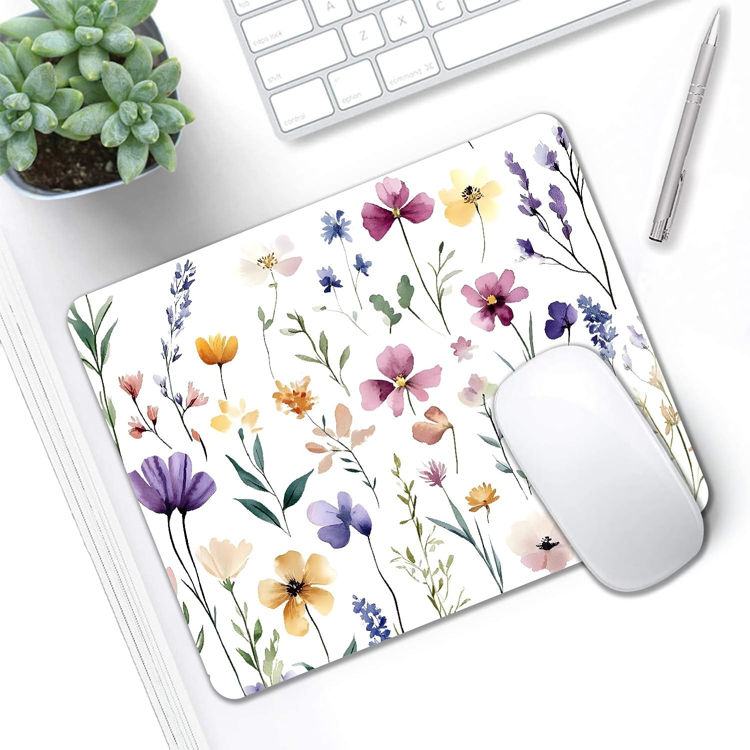Mouse Pad, Cute Purple Wildflowers Mouse Pads for Desk, 9.5" x 7.9" Non-Slip Rubber Base Computer Mousepad with Women, Portable Square Design for Wireless Mouse and Pad Laptop Office & Travel