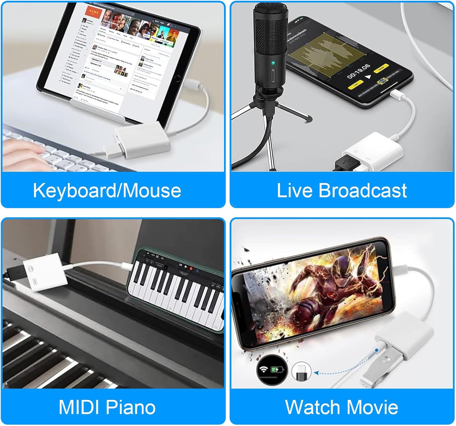 - Charging for iPhone/iPad: The usb to lightning adapter expand a lightning charging port, no need to worry about running out of battery when using. Surprisingly, the usb to lightning cable adapter support sharing battery power with your friends to solve the urgent needs. (Please notice: Charging port is not suitable for USB-C i-Pad/i-phone 15-16 or other usbc device)