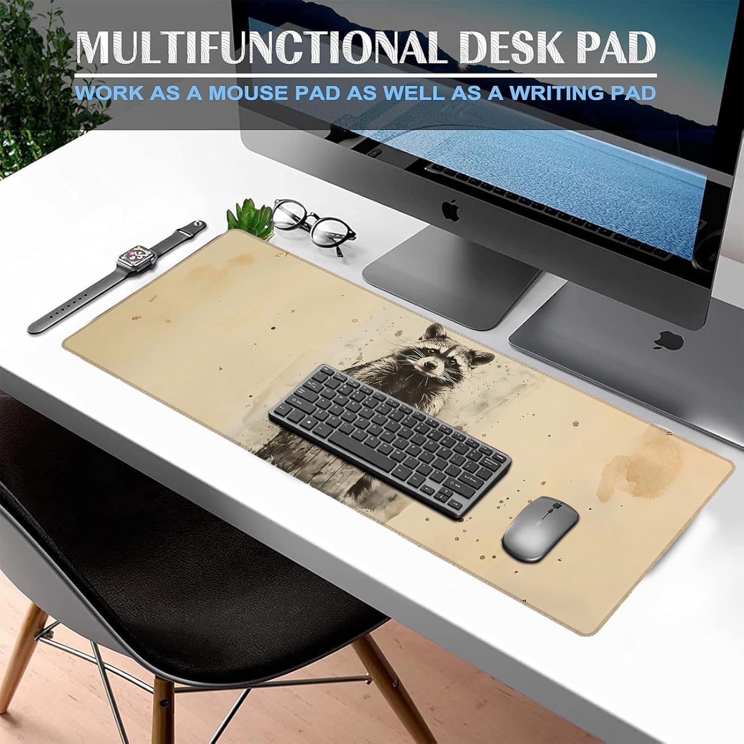 Vintage Raccoon Gaming Mouse Pad, Large Office Desk Mat, Anti-Slip Rubber Base Mousepad for Computer Laptop Keyboard, Smooth Desk Pad for Home Office Gamer Work Accessories 31.5" x 11.8"