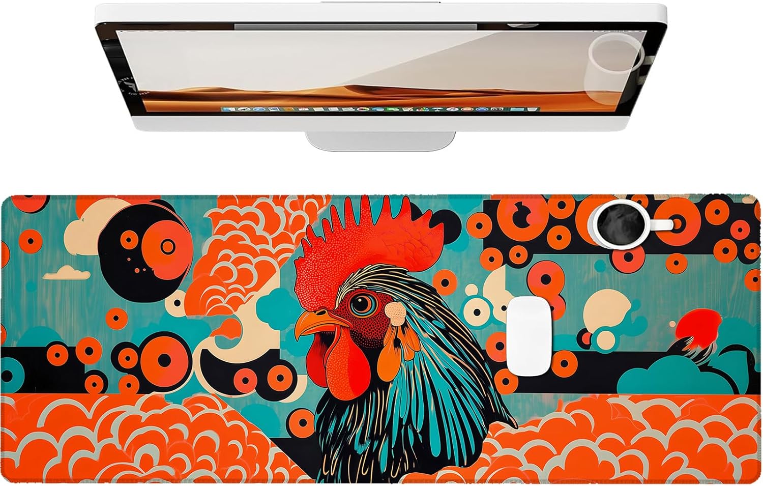 Art Rooster Gaming Mouse Pad, Large Office Desk Mat, Anti-Slip Rubber Base Mousepad for Computer Laptop Keyboard, Smooth Desk Pad for Home Office Gamer Work Accessories 31.5" x 11.8"