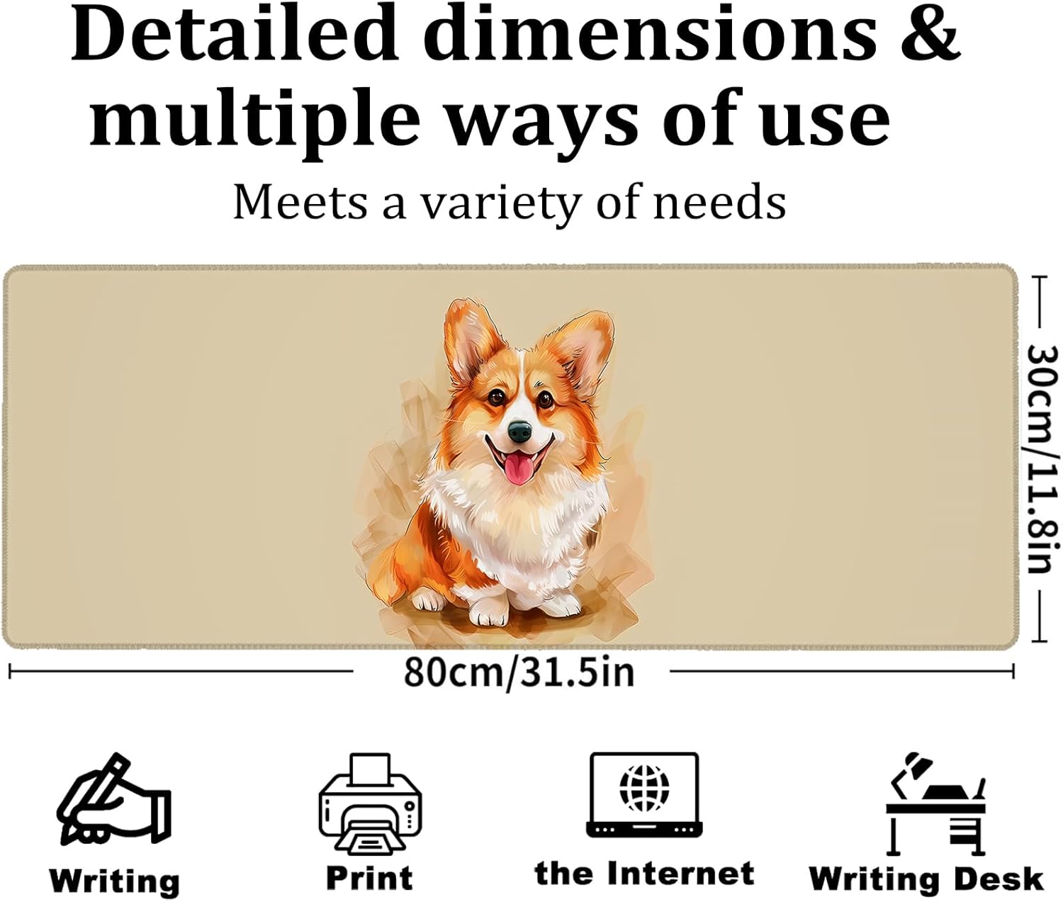 Watercolor Corgi Gaming Mouse Pad, Large Office Desk Mat, Anti-Slip Rubber Base Mousepad for Computer Laptop Keyboard, Smooth Desk Pad for Home Office Gamer Work Accessories 31.5" x 11.8"