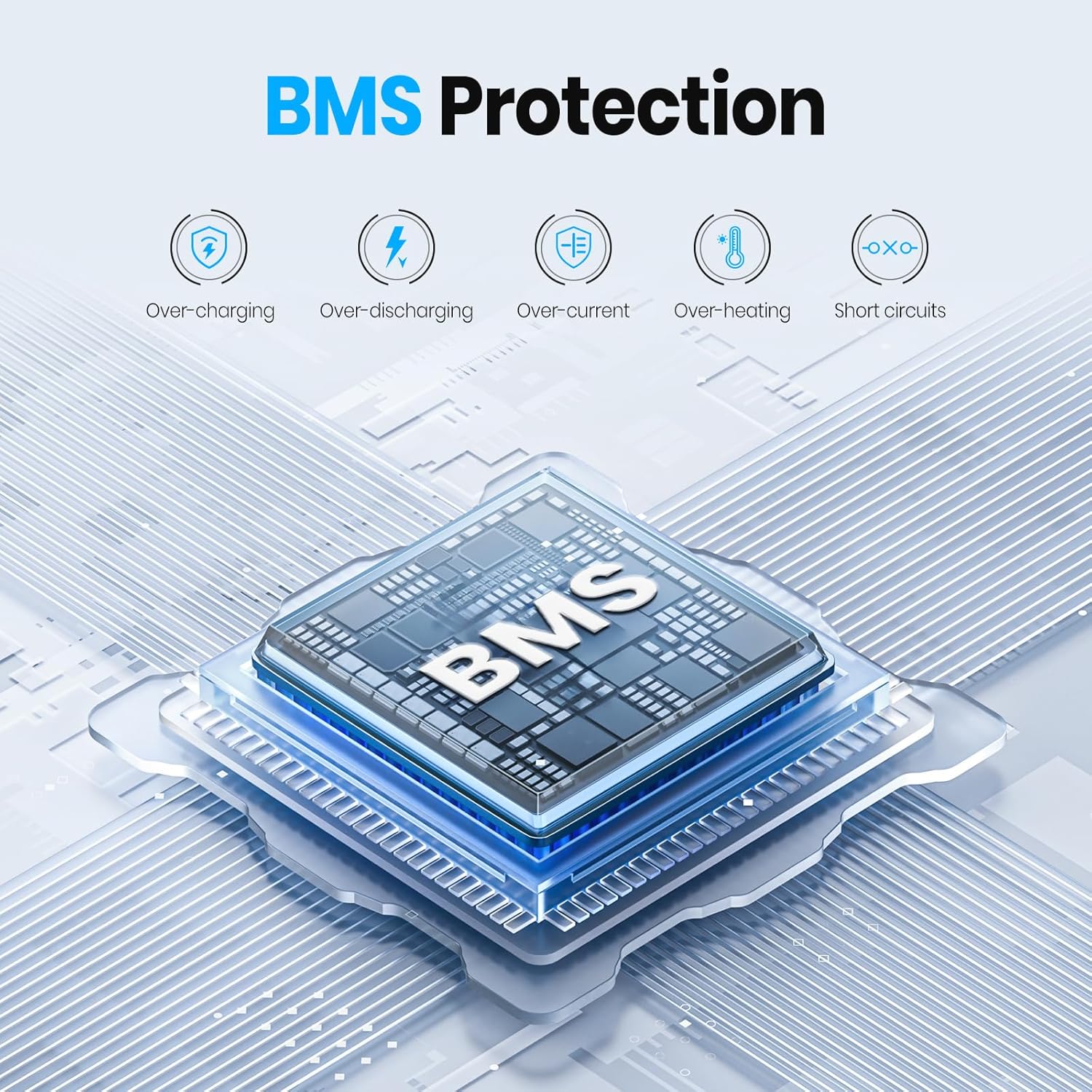 - ăBuilt-in 7A BMSă Vatrer Power 12v deep cycle battery has built-in 7A BMS to protect it from overcharge, over-discharge, over-current, and short circuit with excellent low self-discharge rate. With high temp cutting off prevents charging over 167 °F (75°C)