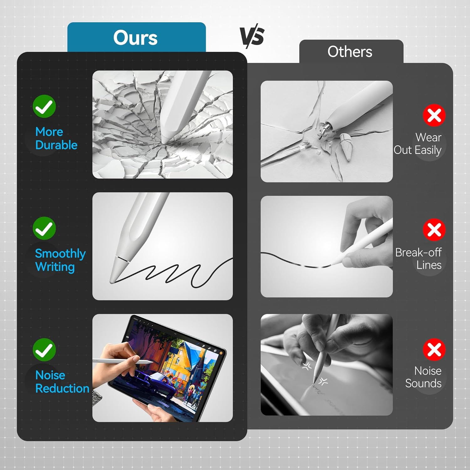 - 【Noise-Free Writing & Screen Protection】Our silent smart note-taking tips deliver smooth, noise-free writing, making them ideal for quiet environments. These tips won’t scratch your iPad screen and are best used with bare screens or standard screen protectors. Enjoy a fluid, pen-on-paper feel without distractions.