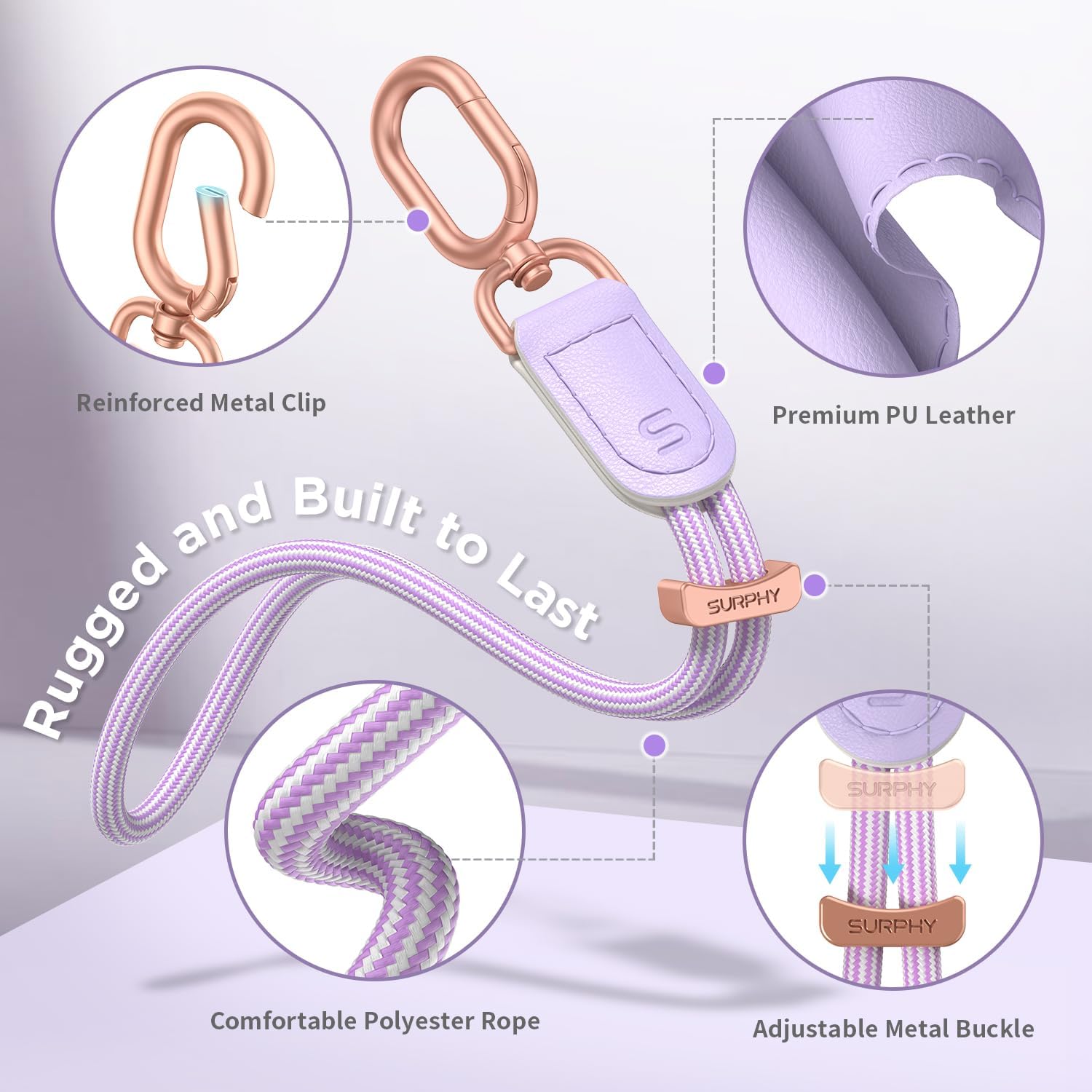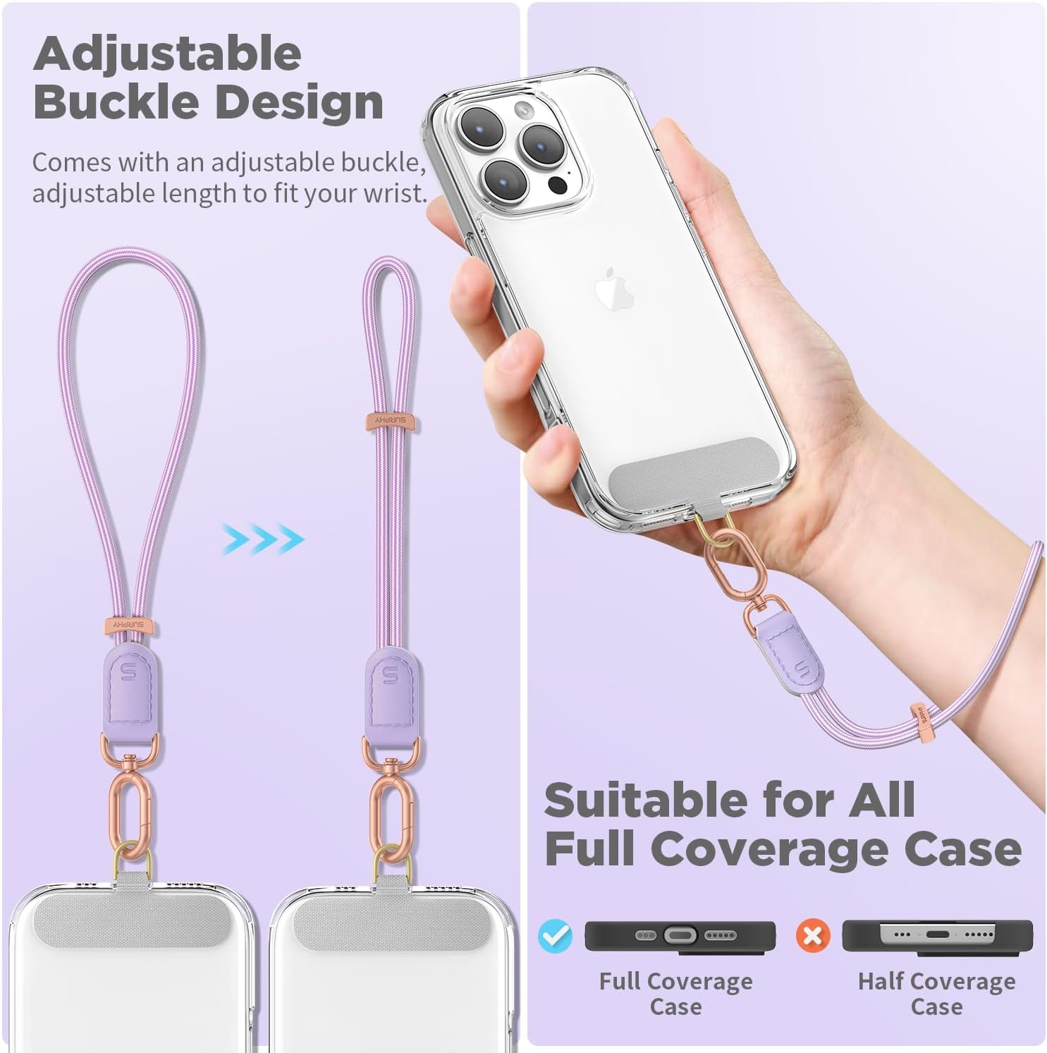 - Anti - Fall Phone Lanyard : SURPHY innovative cell phone lanyard with friendly adjustable metal clasp, just a simple slide the clasp to adjust wrist lanyard to the right elasticity for your wrist, keeping the lanyard firmly attached to your wrist, effectively eliminates the all - too - common risk of your cell phone slipping out of your hand