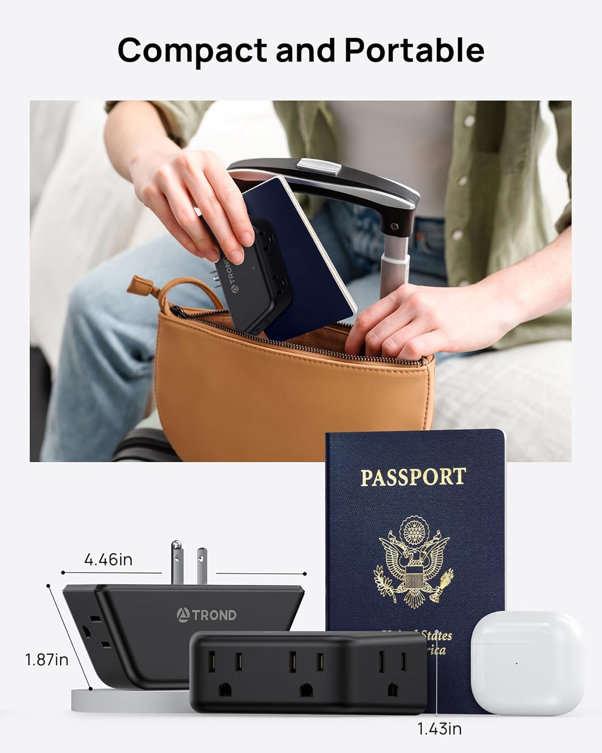 - Compact and Mighty: With a compact size of 4.46 x 1.87 x 1.43 inches, this outlet splitter is perfect for business trips or travel. It saves space and is particularly suitable for tight spots, such as behind couches, furniture