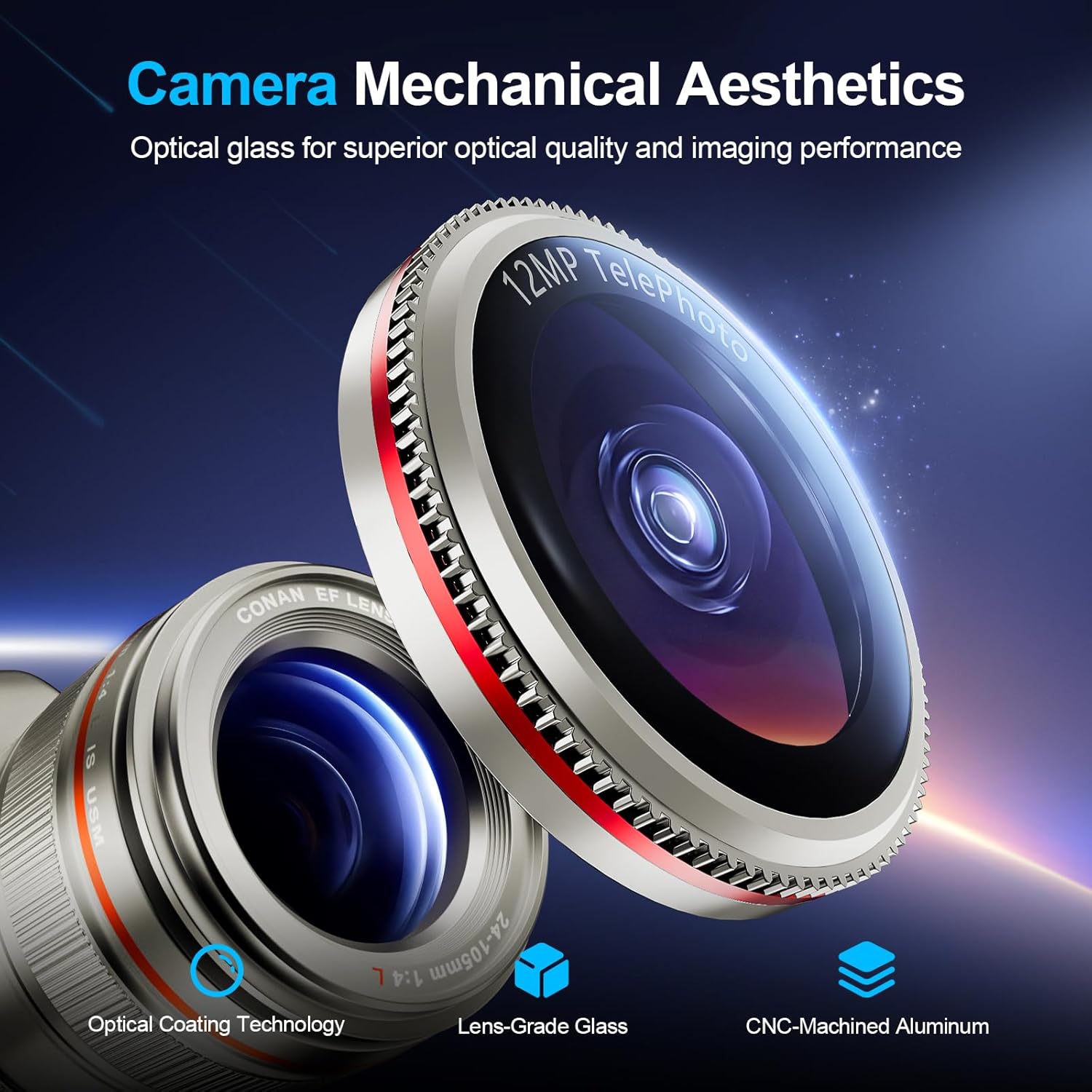 - ✅【Unique Mechanical Aesthetic Design for Photographer and Tech Enthusiast】This iPhone 16 Pro/iPhone 16 Pro Max camera lens protector captures the essence of luxury tech style with its mechanical gear-inspired design, red ring logo, black spotlight layer, and clear labeling of each camera lens. At a glance, you can easily identify the function of each camera lens, enhancing both the visual appeal and practical usability