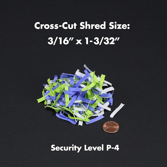 - Shreds paper, CDs, DVDs, credit cards into small pieces (3/16 by 1-3/32 inches), security level P-4