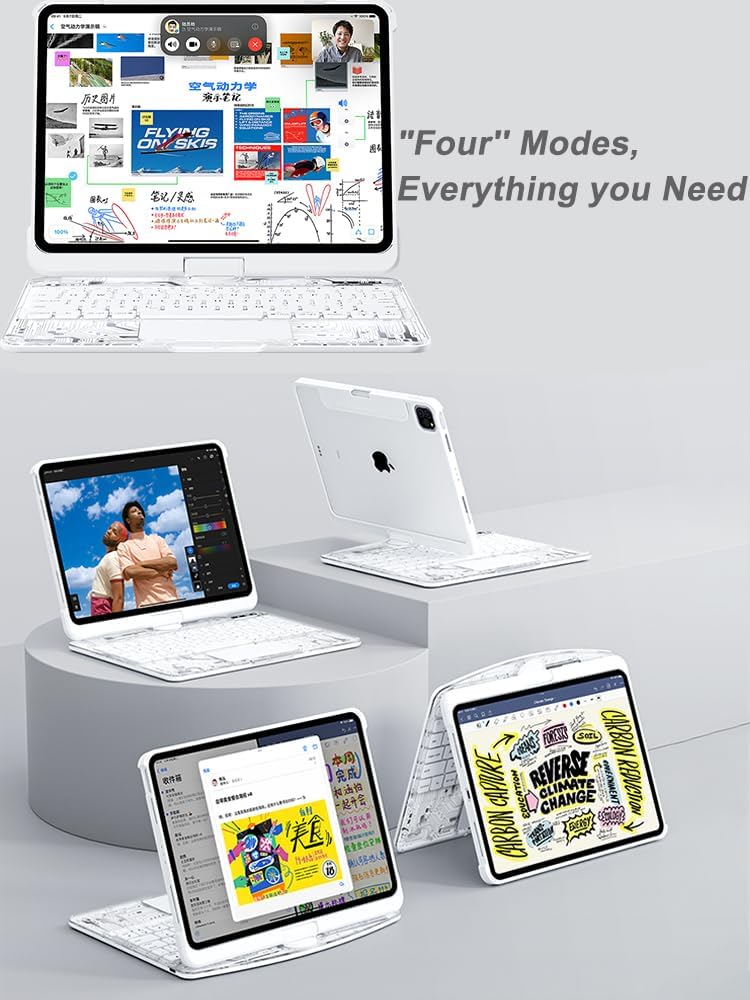 - Versatile Viewing Angles:With multi-angle adjustable support, this keyboard case ensures a stable touch experience without wobbling. Whether you're typing or watching videos, the 360° rotating stand allows you to find the perfect viewing angle.