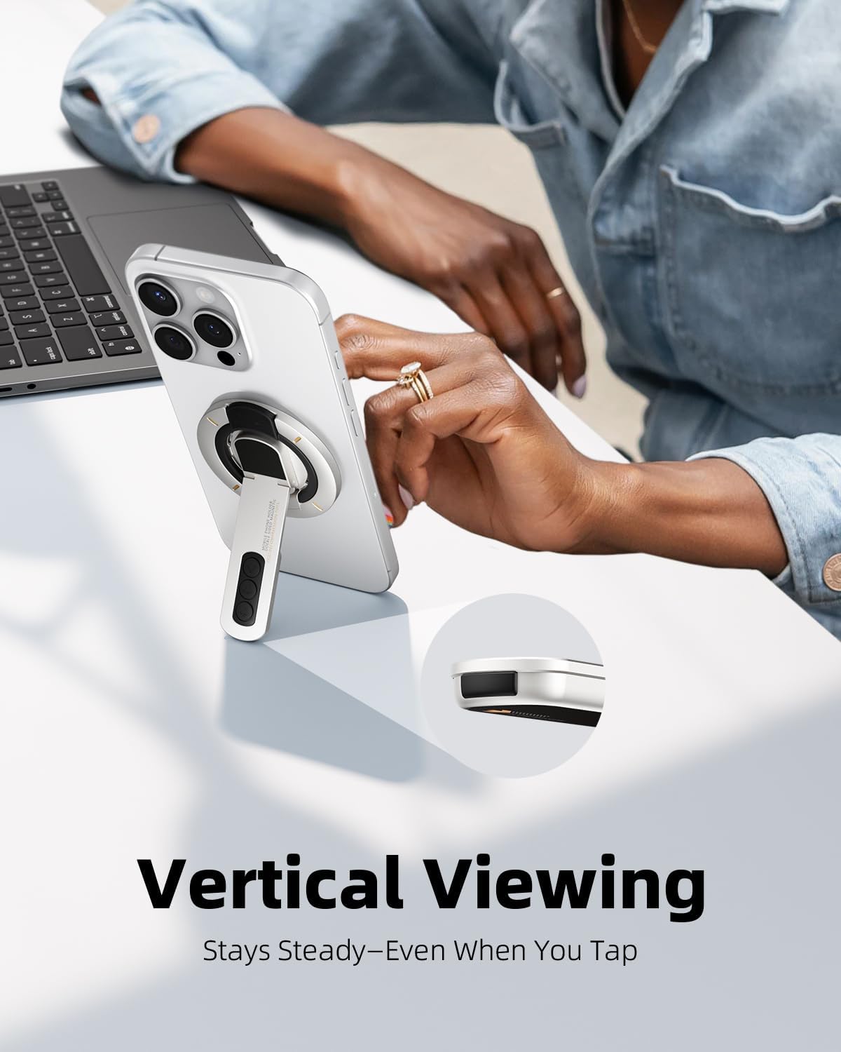 TODI for MagSafe Phone Grip Stand, 3-in-1 Magnetic Finger Ring Holder with Double-Sided Magnet, Fidget Toy Design, Magnetic Phone Stand for iPhone 16/15/14/13/12 Series (White)