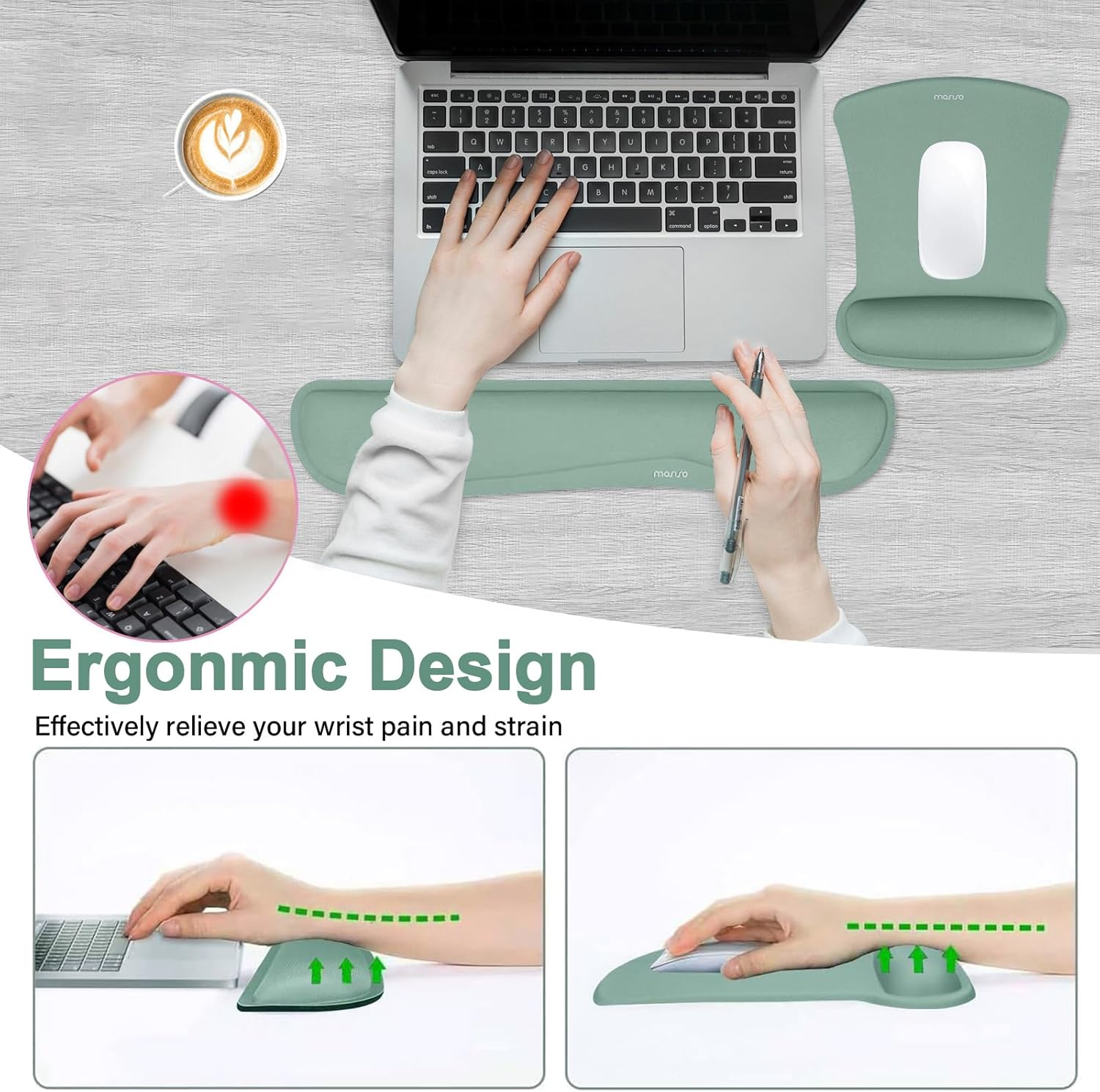 - Ergonomically designed with breathable/durable neoprene cloth and raised memory foam. Efficient for easy typing & pain relief. Offers soft support to relieve pressure and pain of your wrist, keep your wrist in a natural and comfortable state.