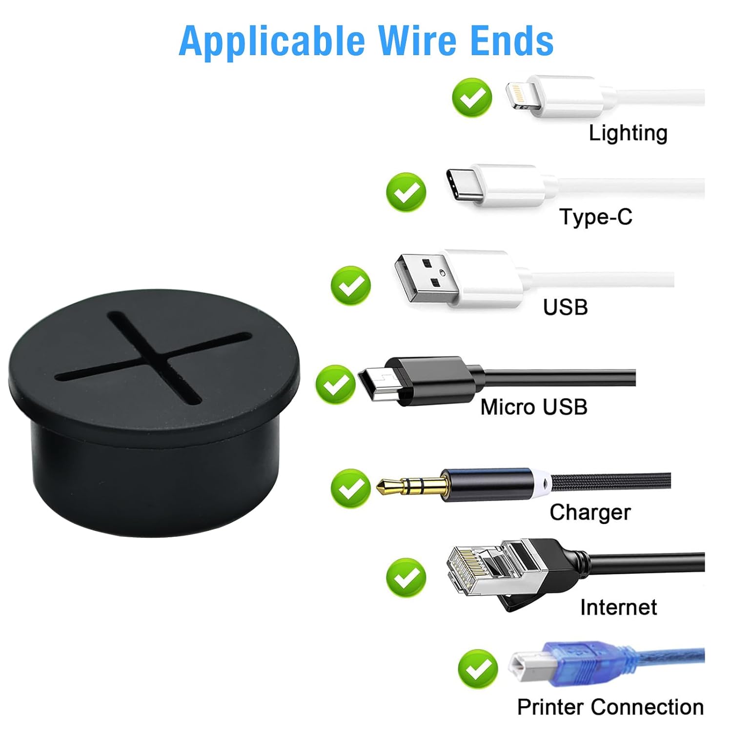 - Easy Installation: Our hole covers for cords are very simple and easy to install, no other tools are required; You just need to put the grommets directly into the holes you drilled and then add or remove cables as needed; The desk cable hole has a flexible opening to accommodate multiple wires from any direction