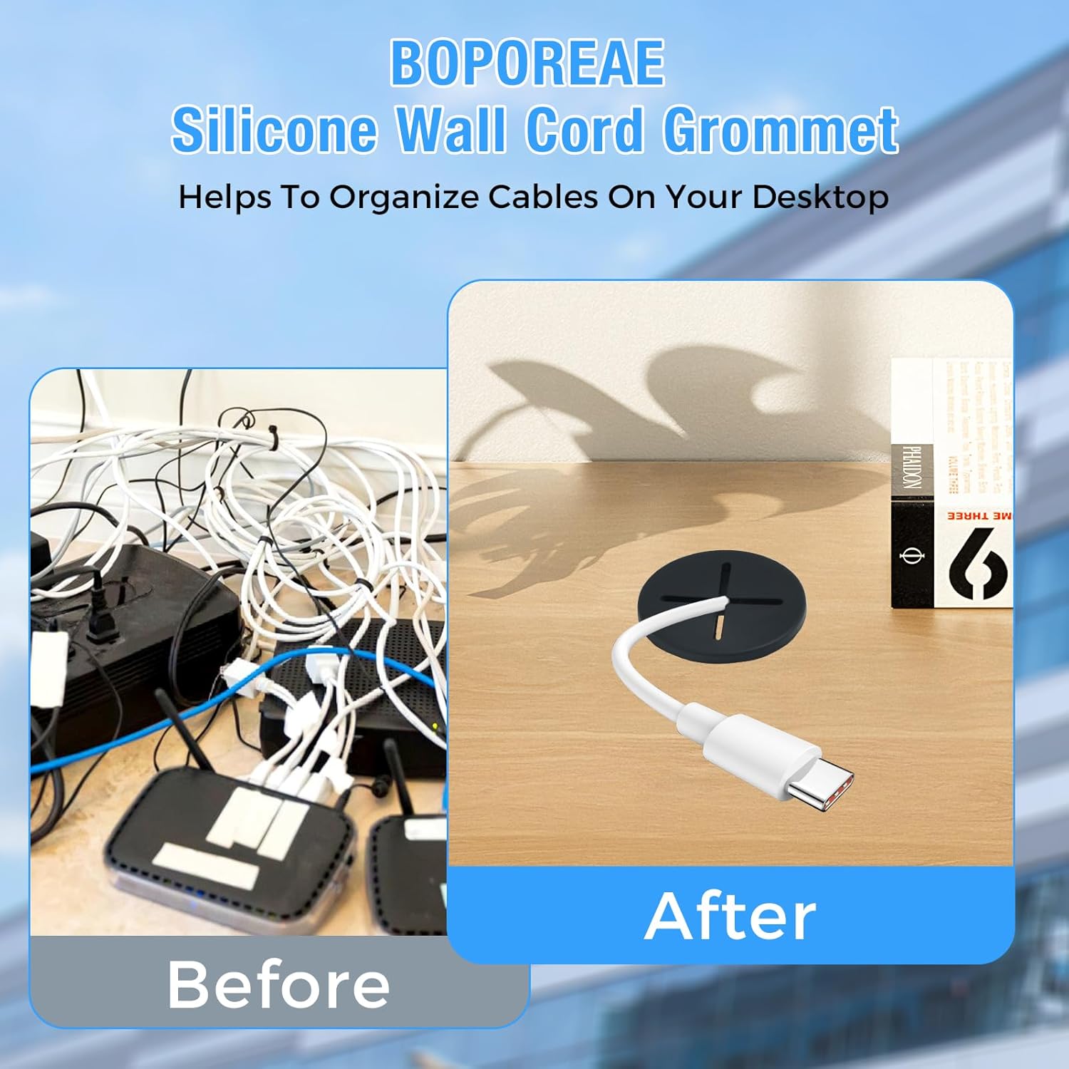- Wide Applications: The desk hole grommet is not only limited to computer countertops, computer components, office desks, office equipment; Desktop grommet is widely used in dressers, lockers, wall cabinets, furniture etc; BOPOREAE furniture hole covert is a great option to manage cables or wires at home, office and school