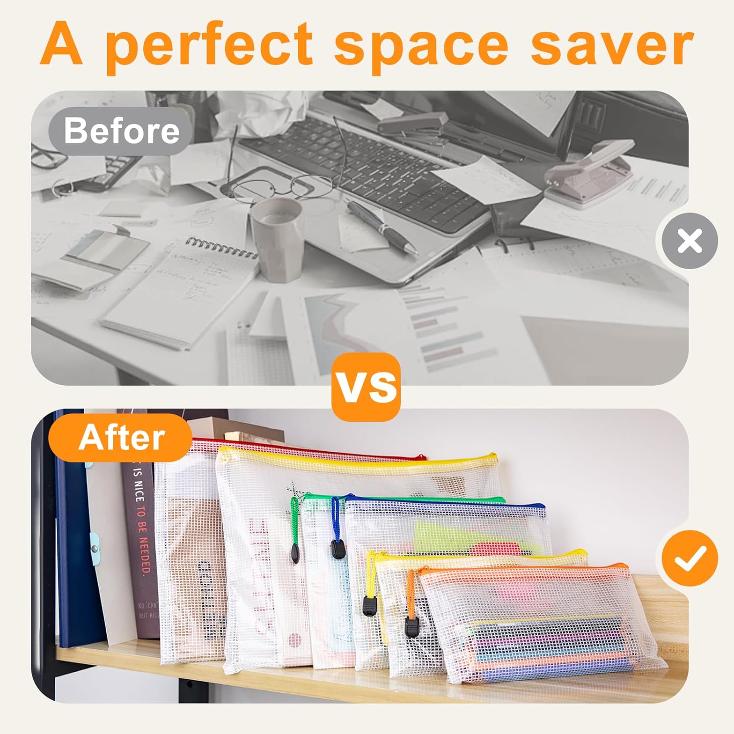 36Pack Mesh Zipper Pouch Bags, Waterproof A4 Letter Size Document Zipper Pouches for Storage, Teacher School, Toys, Puzzle, Office, 12 Colors