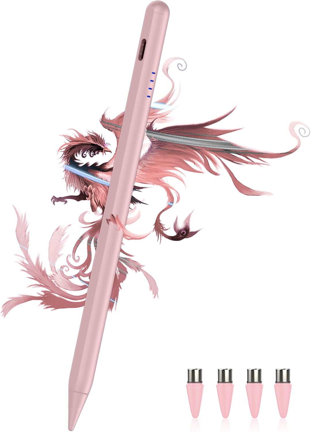 - 【Easy to Use & LED Power Display】 : Quickly tap the top button twice to turn it on/off. The touch screen pen can be used immediately and no Bluetooth connection is required. The iphone pen is equipped with a 4-LED indicator light on the side, allowing you to check the power status in real time, which is worry-free. It will automatically shut down after 5 minutes of inactivity, which is highly efficient and energy-saving