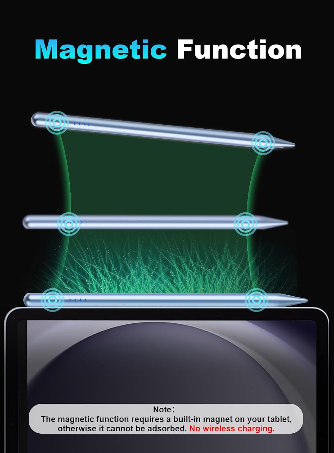 - 【Magnetic Design】 : This stylus for sumsung A9+ is equipped with two magnets. You can attach the stylus to the side of your tablet device for convenient storage and use. Tablet devices also need to have built-in magnets; otherwise, the stylus cannot be magnetized either