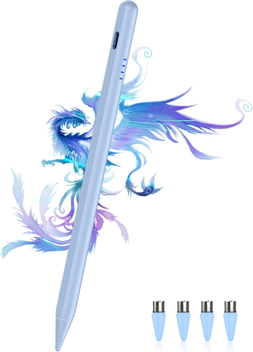 - 【Easy to Use & LED Power Display】 : Quickly tap the top button twice to turn it on/off. The touch screen pen can be used immediately and no Bluetooth connection is required. The iphone pen is equipped with a 4-LED indicator light on the side, allowing you to check the power status in real time, which is worry-free. It will automatically shut down after 5 minutes of inactivity, which is highly efficient and energy-saving