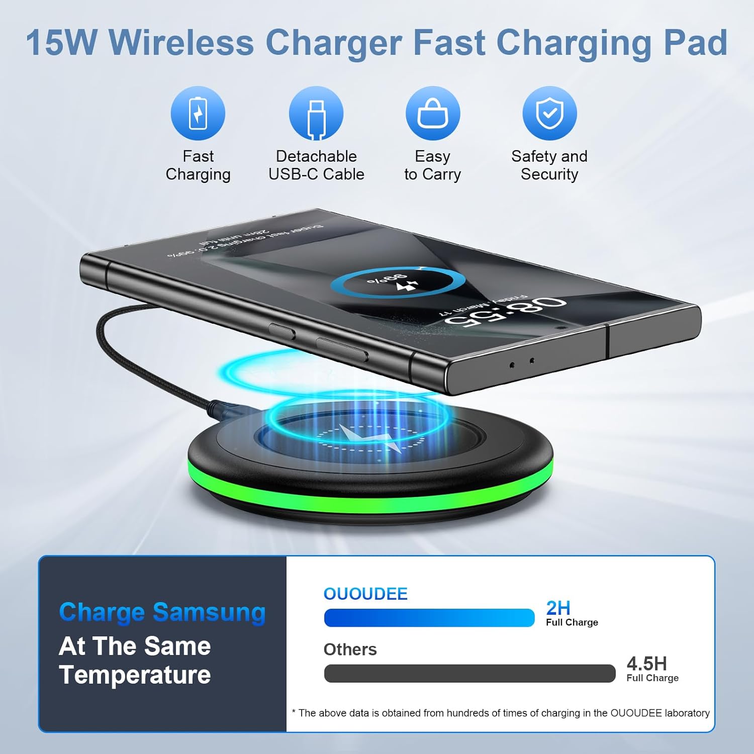 - 【Wide Compatibility】:Wireless charger fast charging pad for Samsung Galaxy S25 Ultra/S25 Edge/S24 Ultra/S24 FE/S24 Plus/S23 Ultra/S23+/S22/S22+/S22 Ultra/S21 Plus/S21 FE/Note 20/S10/S10+/Z Fold 6/Z Flip 6/5/Note 20 Ultra/10/9/S9/S8/S7/S6 Edge+,Motorola Edge 2024,Edge 50 Ultra,G Power 2025/2024,G Stylus 5G 2024,X50 Ultra,Razr 50 Ultra,Razr 40 Ultra,iPhone 16e/16/16 Pro/16 Plus/16 Pro Max/15/15 Plus/15 Pro Max/14/14 Plus/14 Pro Max/12/13 Pro Max/12/12 Pro Max,Google Pixel 9a/9 Pro xl//8a/8/8 Pro/7/7a/7 Pro/6 Pro/6/5/5XL/4/4XL/3/3XL,LG V60/V50 /V40/G8/G7 and more.