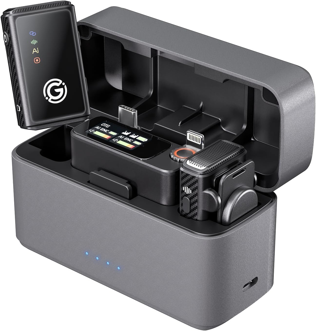 Wireless Microphone, AI Noise Cancelling with 56H Battery, 656ft Range & Wind Muff for iPhone/Android/Camera, Magnetic Clip-On for Streaming/Vlog/Interview