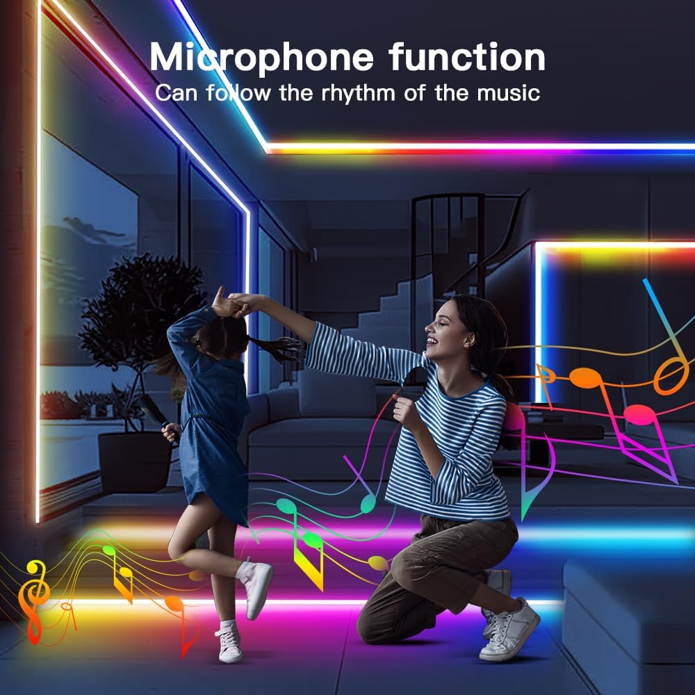 - Built-in Microphone for Sound Reactivity​​: Integrated high-sensitivity mic enables ​​real-time audio sync​​—LEDs dynamically shift colors, pulse, and strobe to match music beats or ambient sounds for immersive experiences