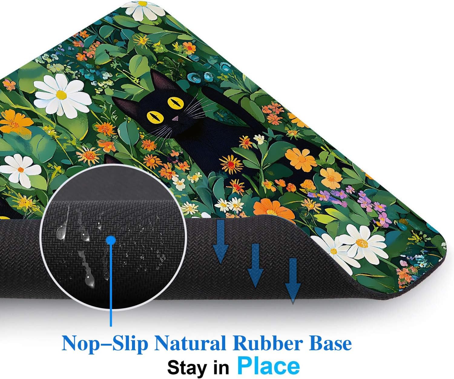 Cute Flowers Black Cats Mouse Pads for Desk, Portable Wireless Computer Mouse pad Small Design with Women, Non-Slip Rubber Base Laptop Mousepad 9.5" x 7.9" Smooth Surface for Office & Travel