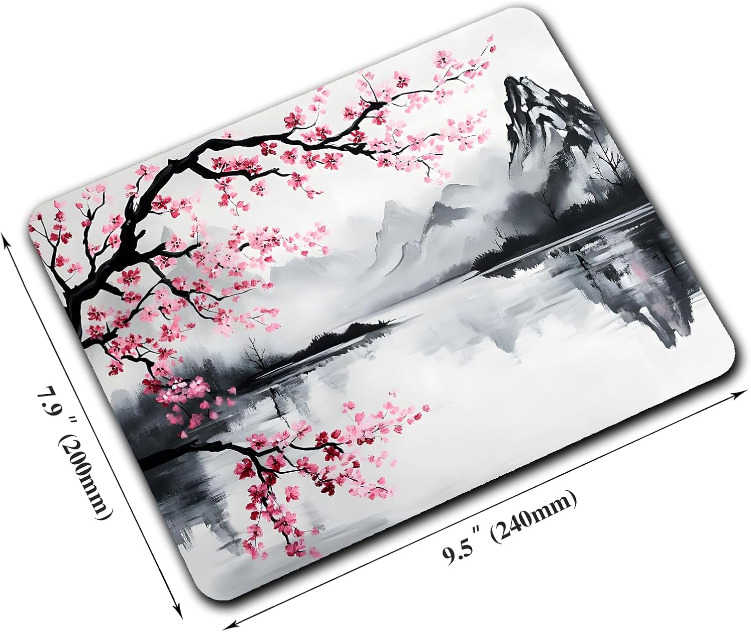 Japanese Cherry Blossom Mouse Pads for Desk, Portable Wireless Computer Mouse pad Small Design with Women, Non-Slip Rubber Base Laptop Mousepad 9.5" x 7.9" Smooth Surface for Office & Travel